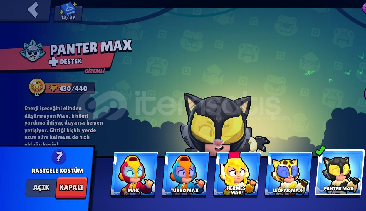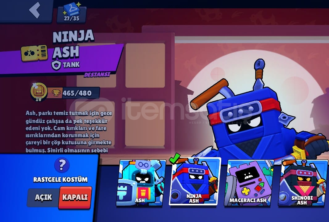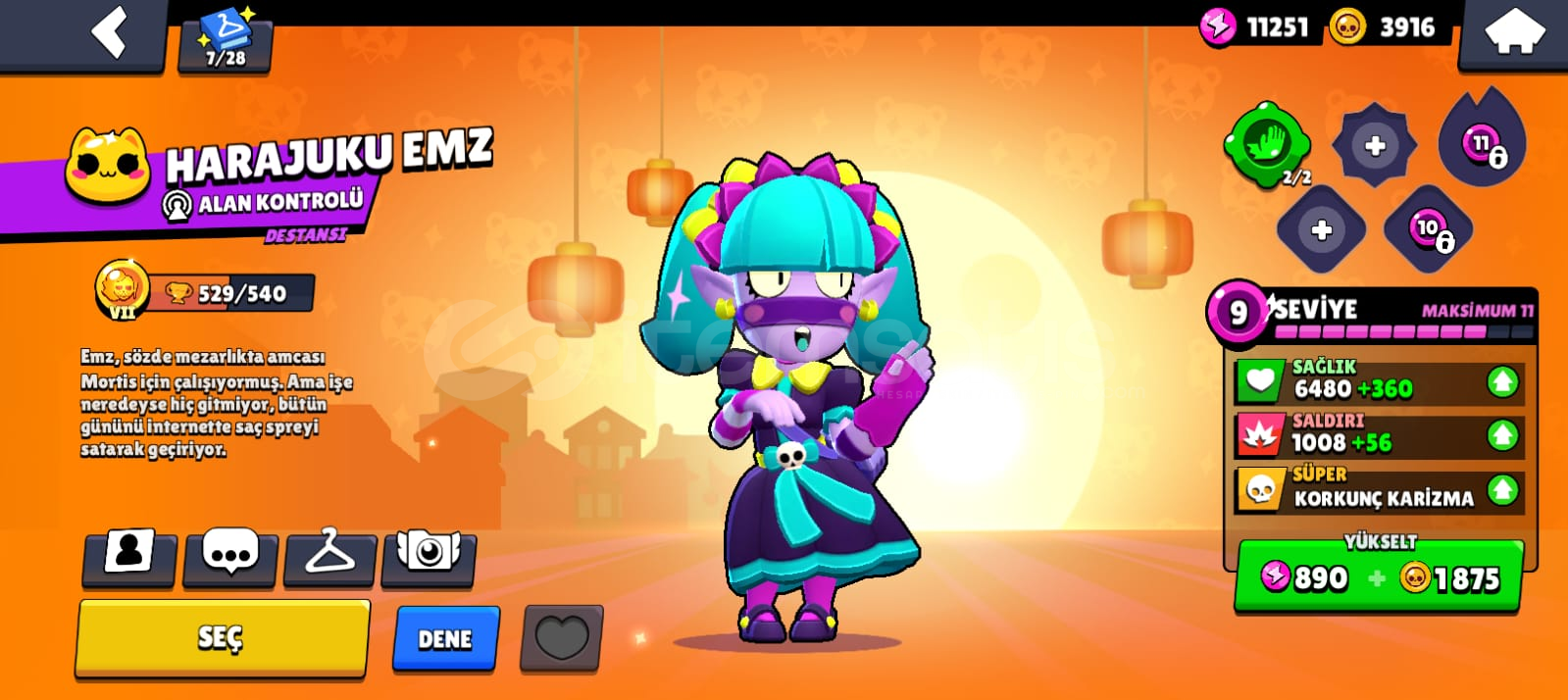 Brawl Stars 17000 kupa 48 karakterli hesap hesaptaki diğer kostümler Prenses Shelly Psg Shelly Köpek Balığı Colt Yarışçı Carl Mega Böcek Bea Pilot Colette Mareşal Ruffs Dinozor Leon Surge Kong