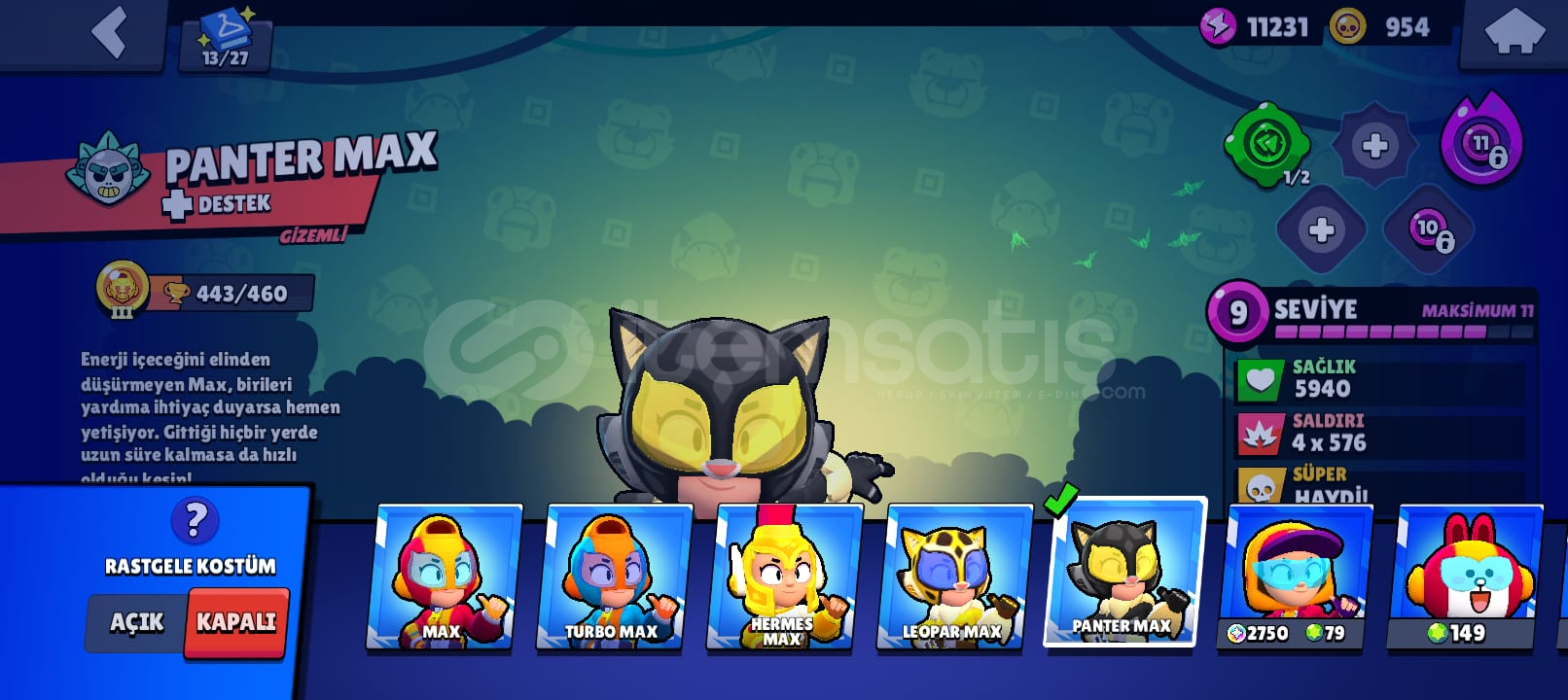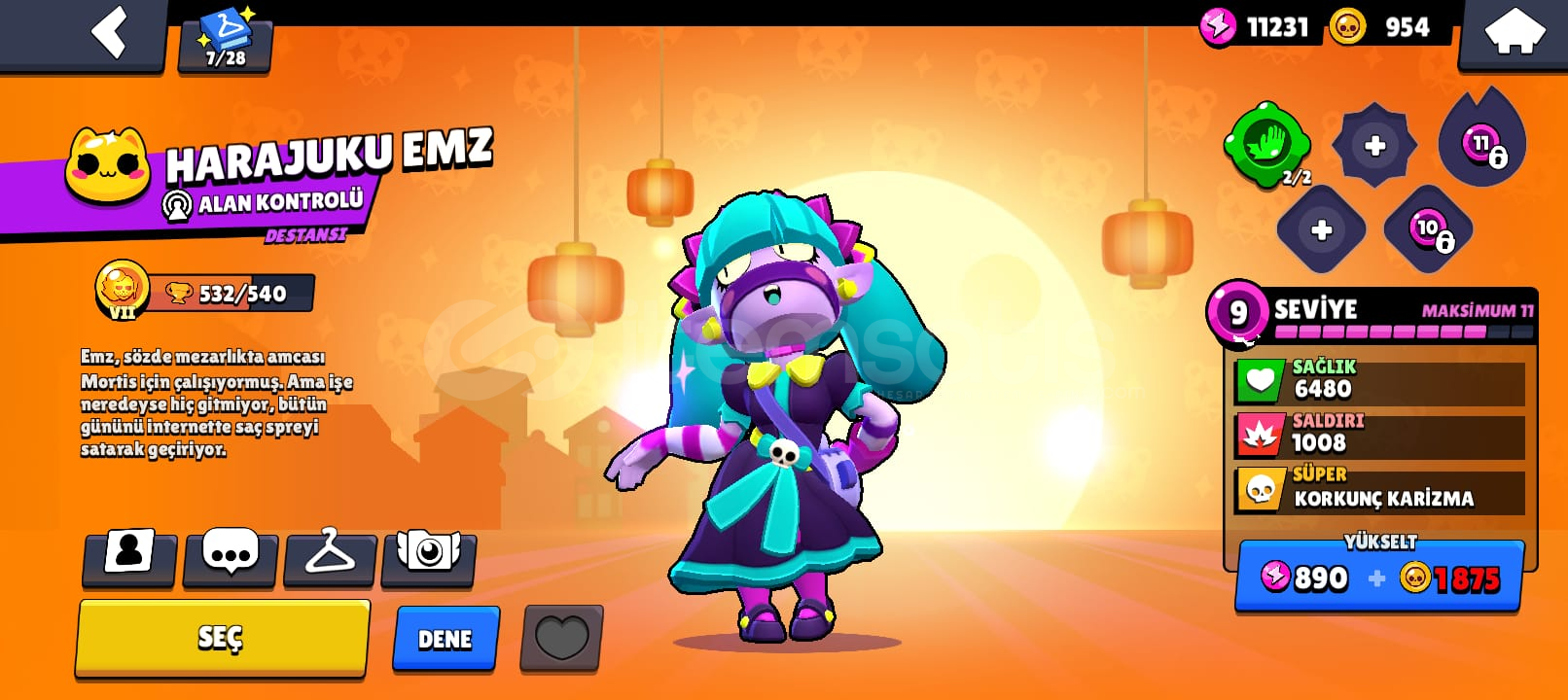Brawl Stars 17500 kupa 51 karakterli hesap  hesapta 6 Efsane 10 Gizemli karakter var