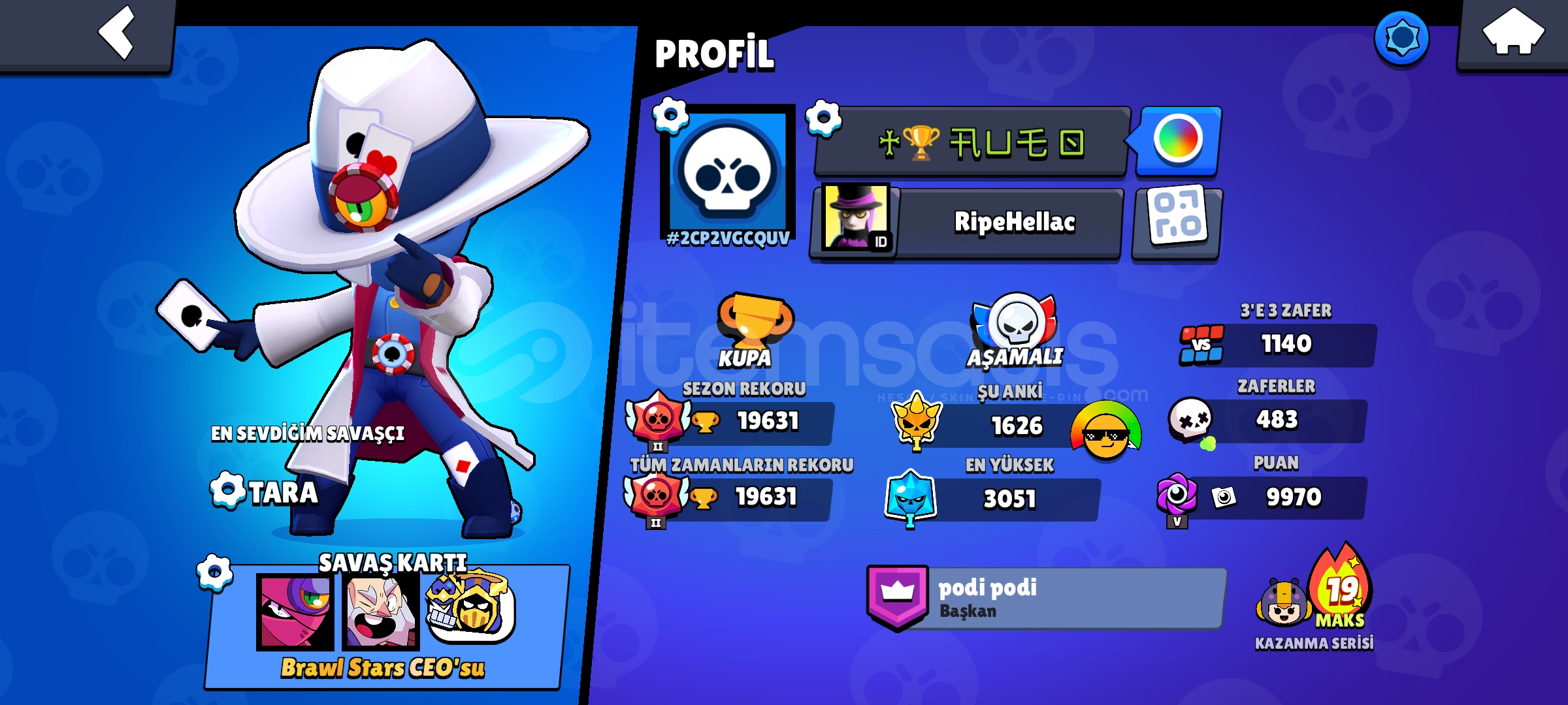 Brawl Stars hesabımı satıyorum gün geçtikçe kupa kasmaya devam edeceğimDIKKAT❗: Her zaman aktif değilim eğer 24 saat içinde geri dönüş almazsanız iptal edin