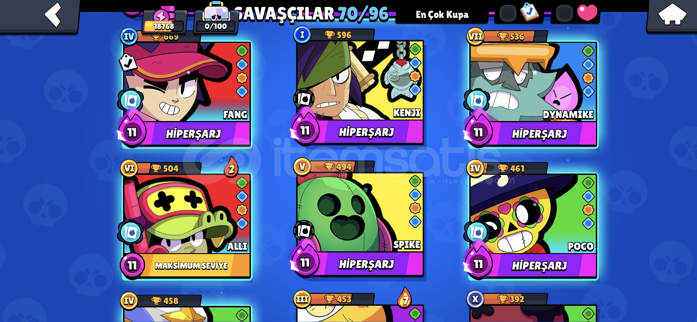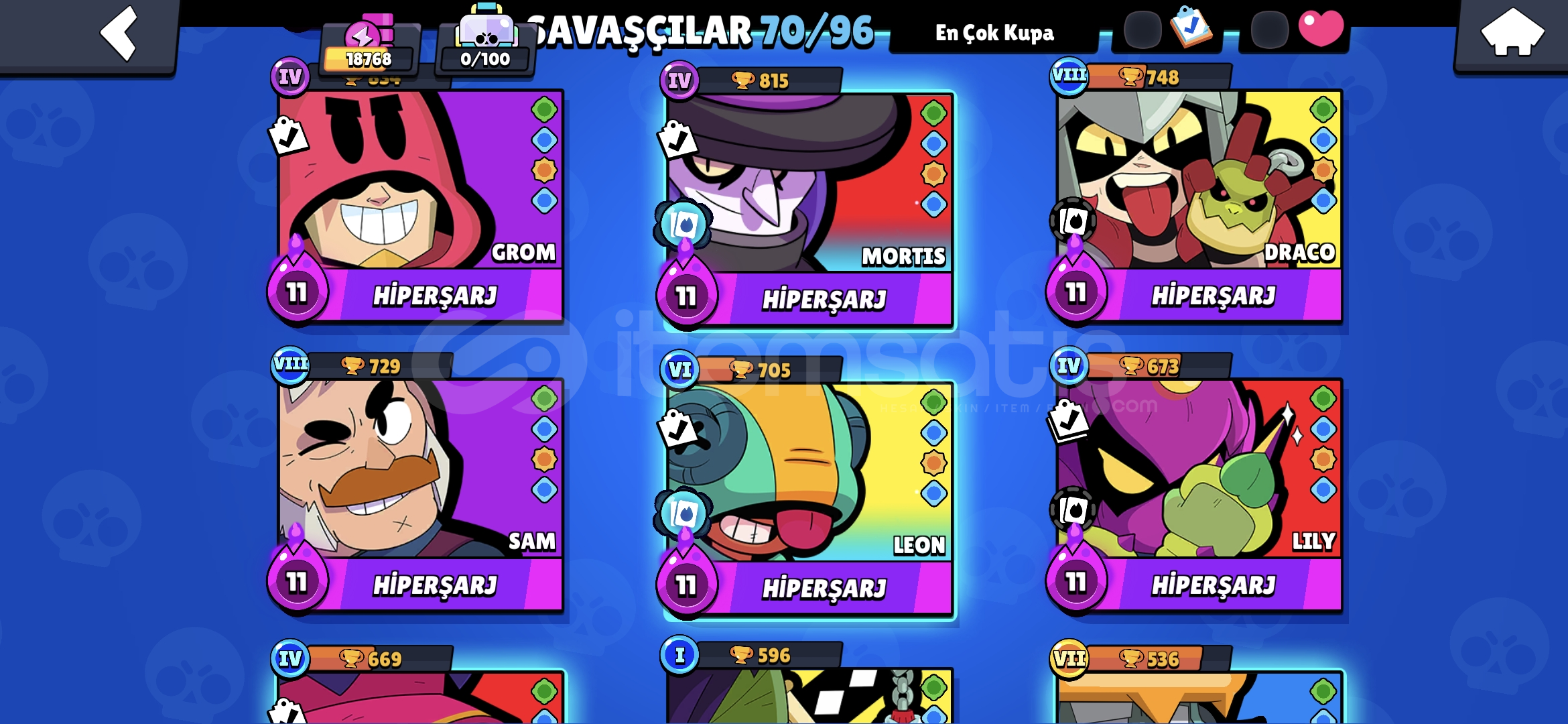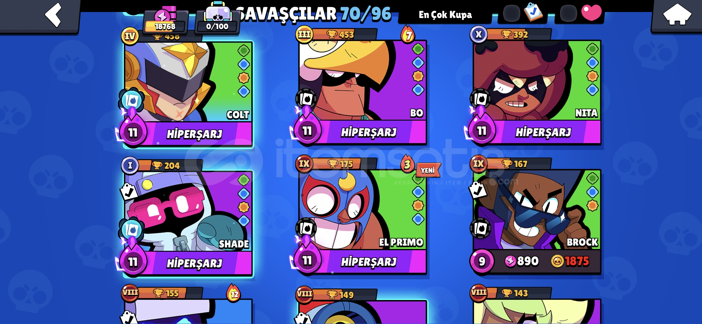 Brawl Stars Hesabı Satılık – 18.000 Kupa / 23 Full Karakter / 21 Efsanevi!