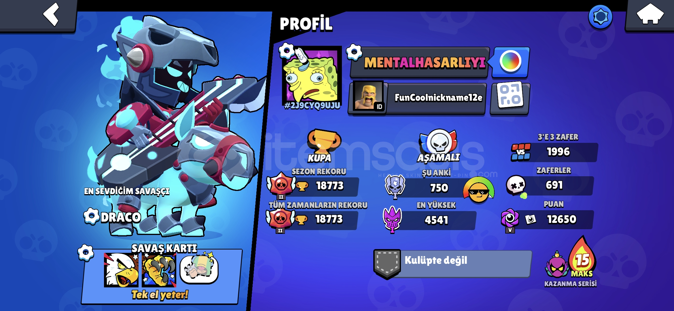 Brawl Stars Hesabı Satılık – 18.000 Kupa / 23 Full Karakter / 21 Efsanevi!🔥 23 karakter full⭐ 21 efsanevi skin⚡ 6 hipersarj skin💥 14 gizemli, 74 destansı, 40 süper ender, 50 ender skin🎟️ 2 Pro Pass alındı (Dynamike ve Colt özel skinleri mevcut)🏆 18.000 kupa – ranked’da gizemliye kadar çıkıldı💪 4 karakter 1000 kupa🎮 Toplam 70 karakter açık...
