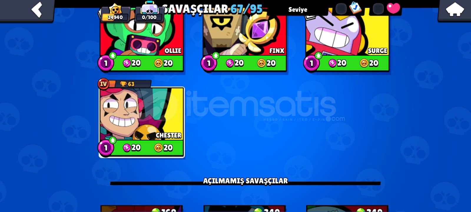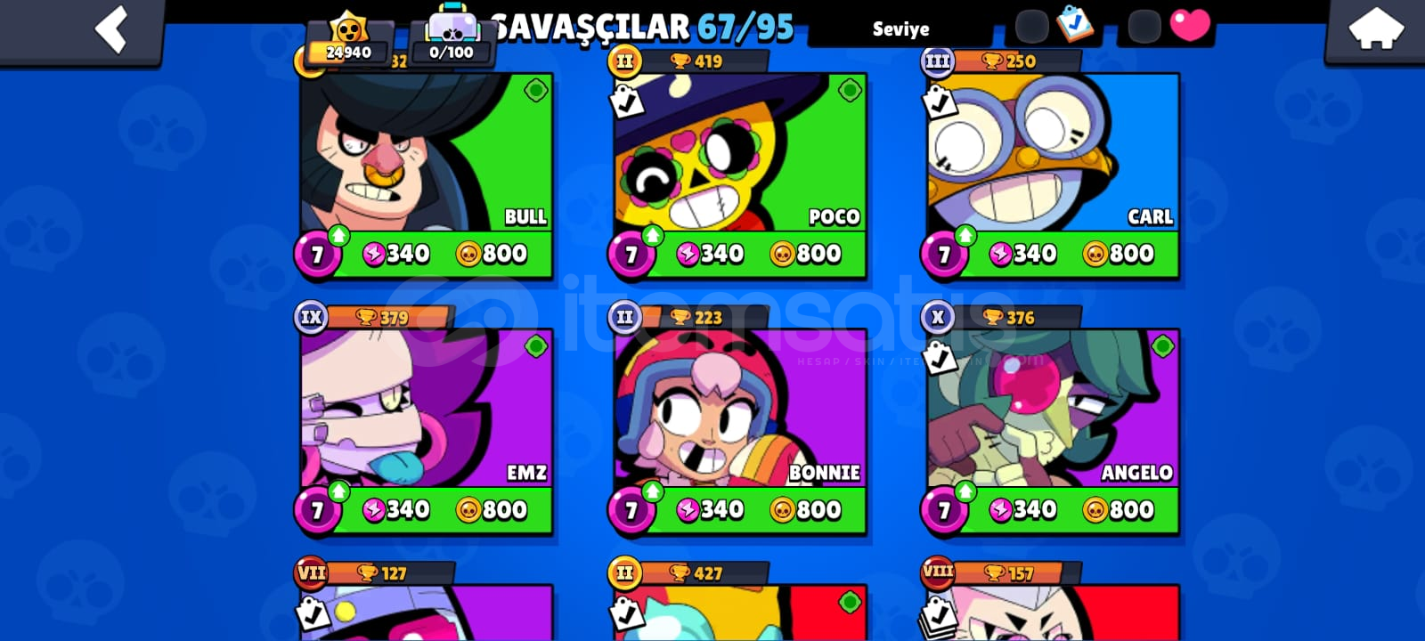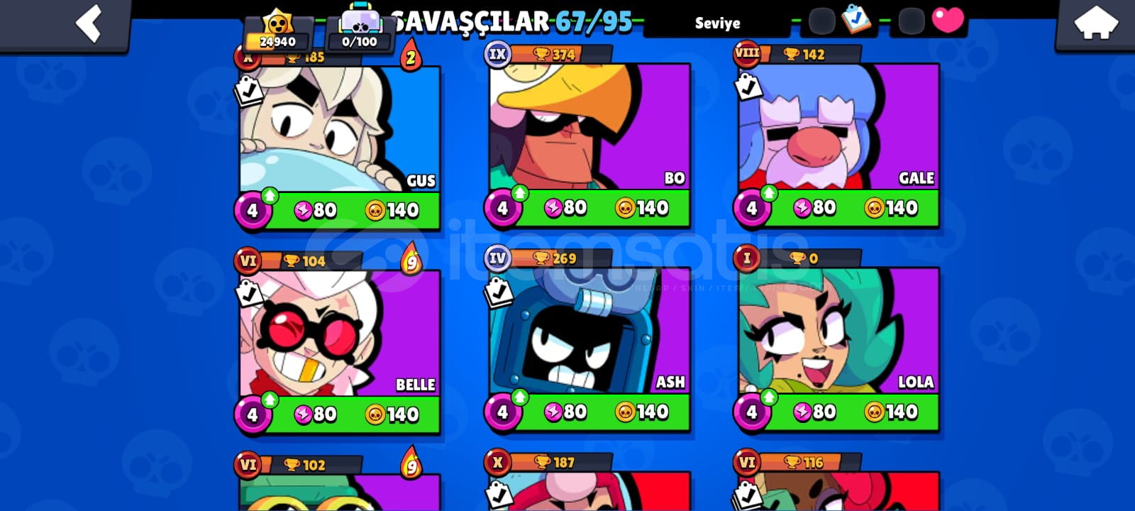 Hesap 25.000 yakın kupası olup 18 hiperşarjı olup Colt karakterinin gümüş skini hariç bütün skinleri mevcuttur.4 tane Hiperşarj kostumu vardır.Hesap karakter sayısı az ama hesap şans konusunda birliktedir.Görseller Max 10 olduğundan bazı görüntüler yoktur.Şüphesi olanlar alıcılar dm ile çözülebilir.