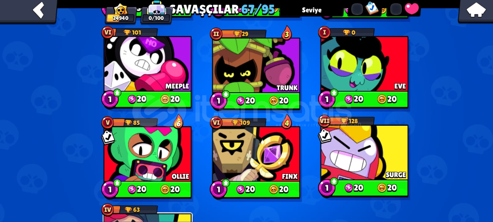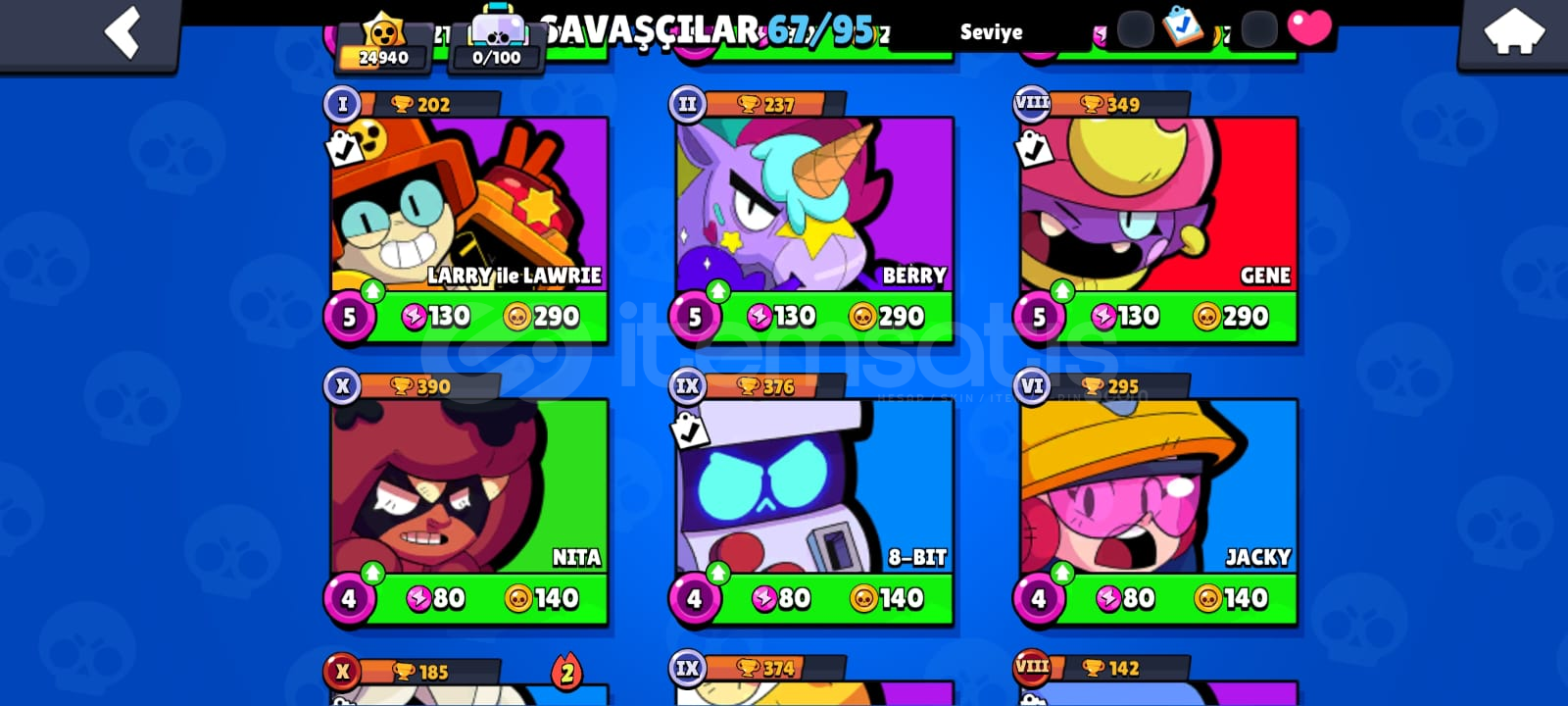 Hesap 25.000 yakın kupası olup 18 hiperşarjı olup Colt karakterinin gümüş skini hariç bütün skinleri mevcuttur.4 tane Hiperşarj kostumu vardır.Hesap karakter sayısı az ama hesap şans konusunda birliktedir.Görseller Max 10 olduğundan bazı görüntüler yoktur.Şüphesi olanlar alıcılar dm ile çözülebilir.PAZARLIK PAYI VARDIR!!!