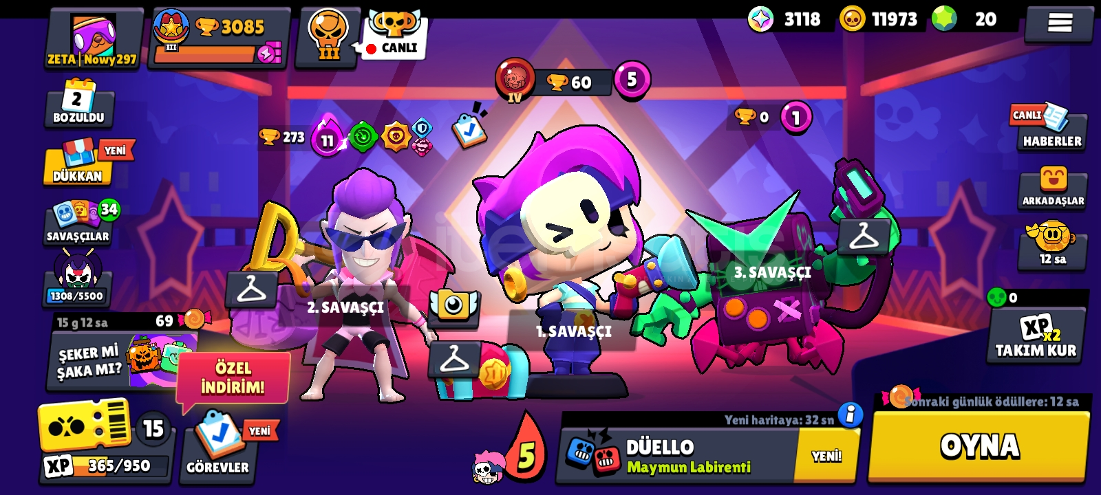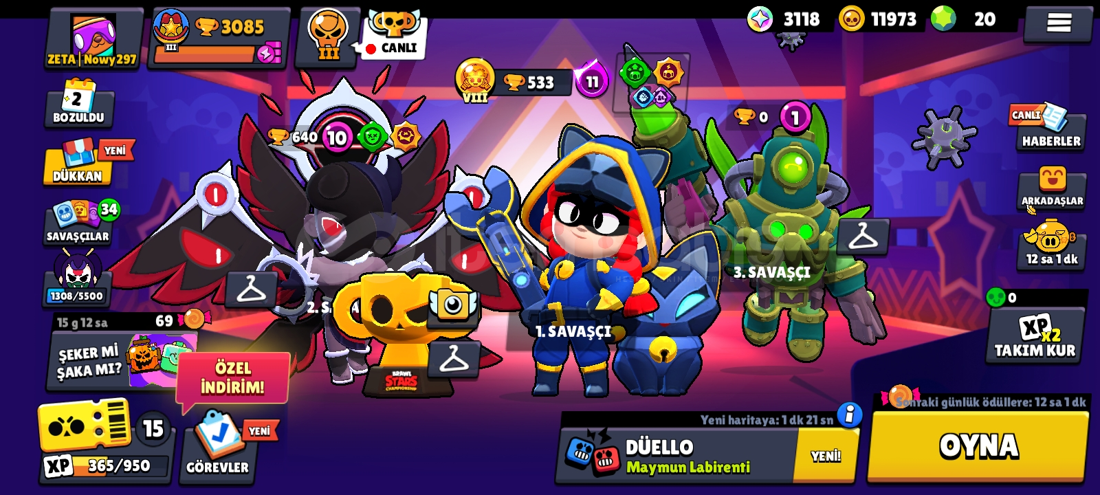 💚3000 kupalı 36 karakterli 10 ender 24 süper ender 11 destansı 2 gizemli 1 efsanevi 1 de Edgar in hipersarj kostümü var / içinde 3 efsanevi karakter var\isim değiştirmek ücretsiz dır alır almaz bedava ya değiştirebilirsiniz//not : espor kostümü de var 1 adet💚