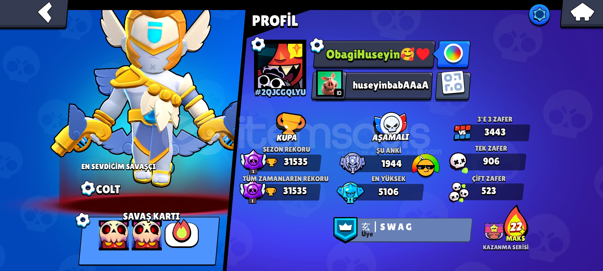 31 K KUPA 110 KOSTÜM BULUNMAKTA 2 TANE RANK 30 VAR EFSANEVİ KOSTÜM VARDIR İÇİNDE 3500 MUCEVHER 40 ELMAS VARDIRHESAB...