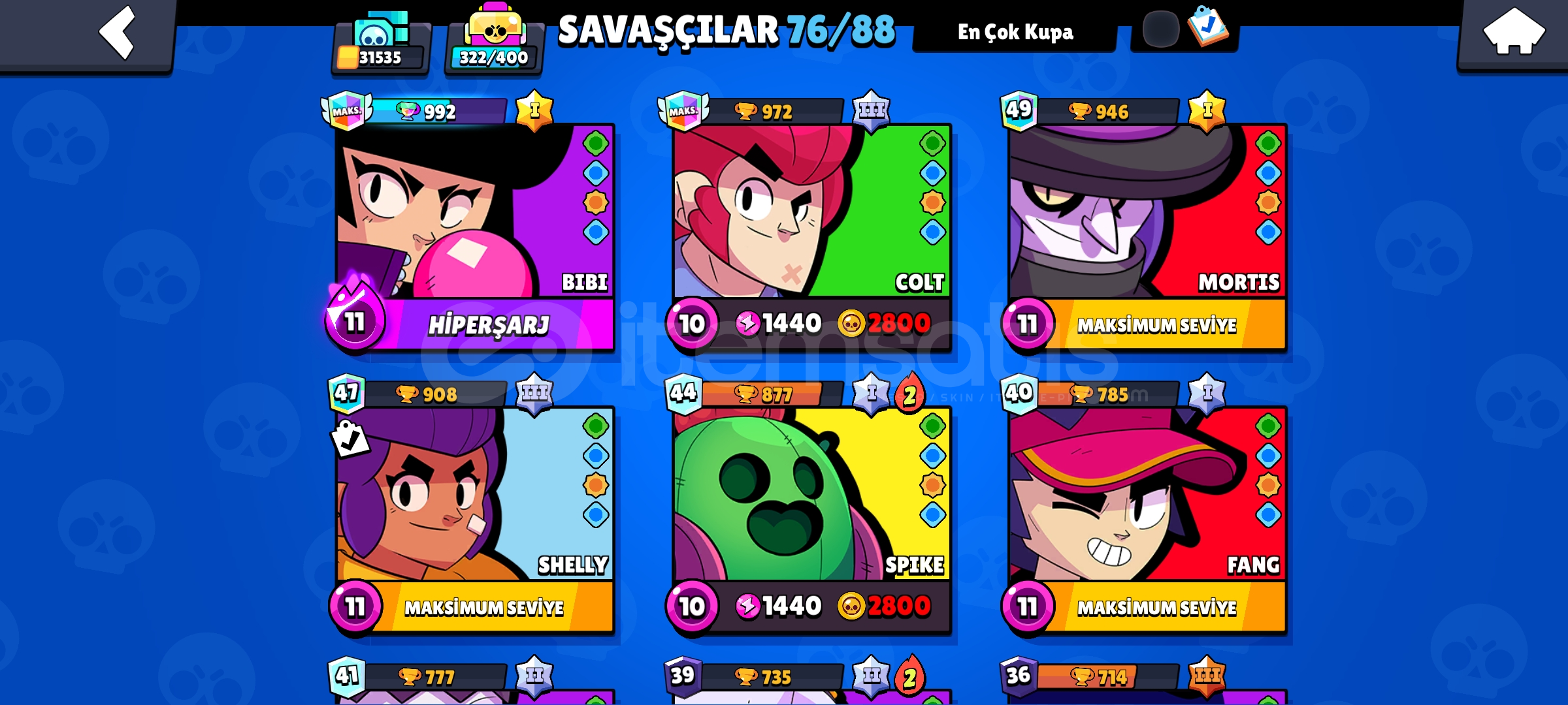31 K KUPA 110 KOSTÜM BULUNMAKTA 2 TANE RANK 30 VAR EFSANEVİ KOSTÜM VARDIR İÇİNDE 3500 MUCEVHER 40 ELMAS VARDIR