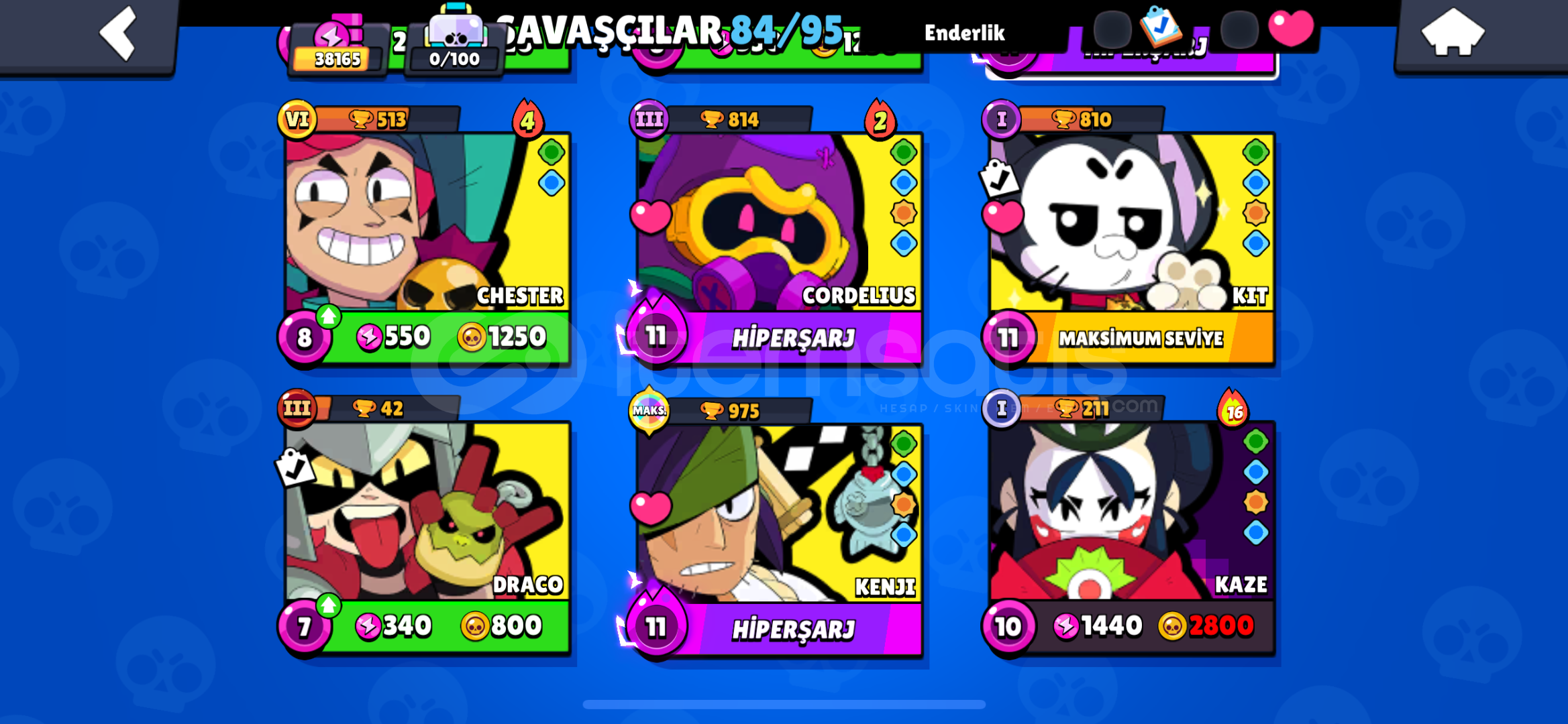 Brawl Stars 38K Kupa 85 Karakterli 2018 KurulumluYıldız Shelly Var 12 Evsanevi Ve Kaze Açık Sorularınızı Beklerim...