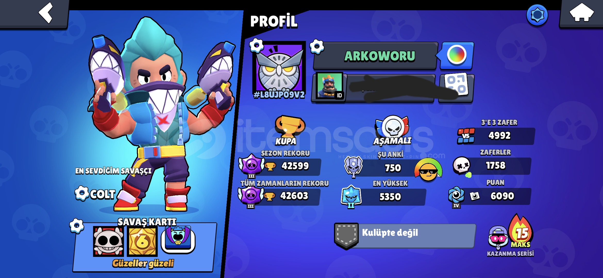 Brawl Stars Koleksiyon Hesabı Satılıktır📌 42800 Kupa📌 89 Karakter📌 176 Kostüm📌 Mecha Crow – Dino Buzz – Fang sezon skinleri mevcut📌 Power League skin yoktur📌 Supercell ID’ye bağlı – yeni Gmail ile devredilir📌 Ceza/ban geçmişi yok📌 Güvenli teslimat (yeni Gmail + şifre devri)💸 Fiyat: 2500TL Ciddi alıcılar ulaşsın.