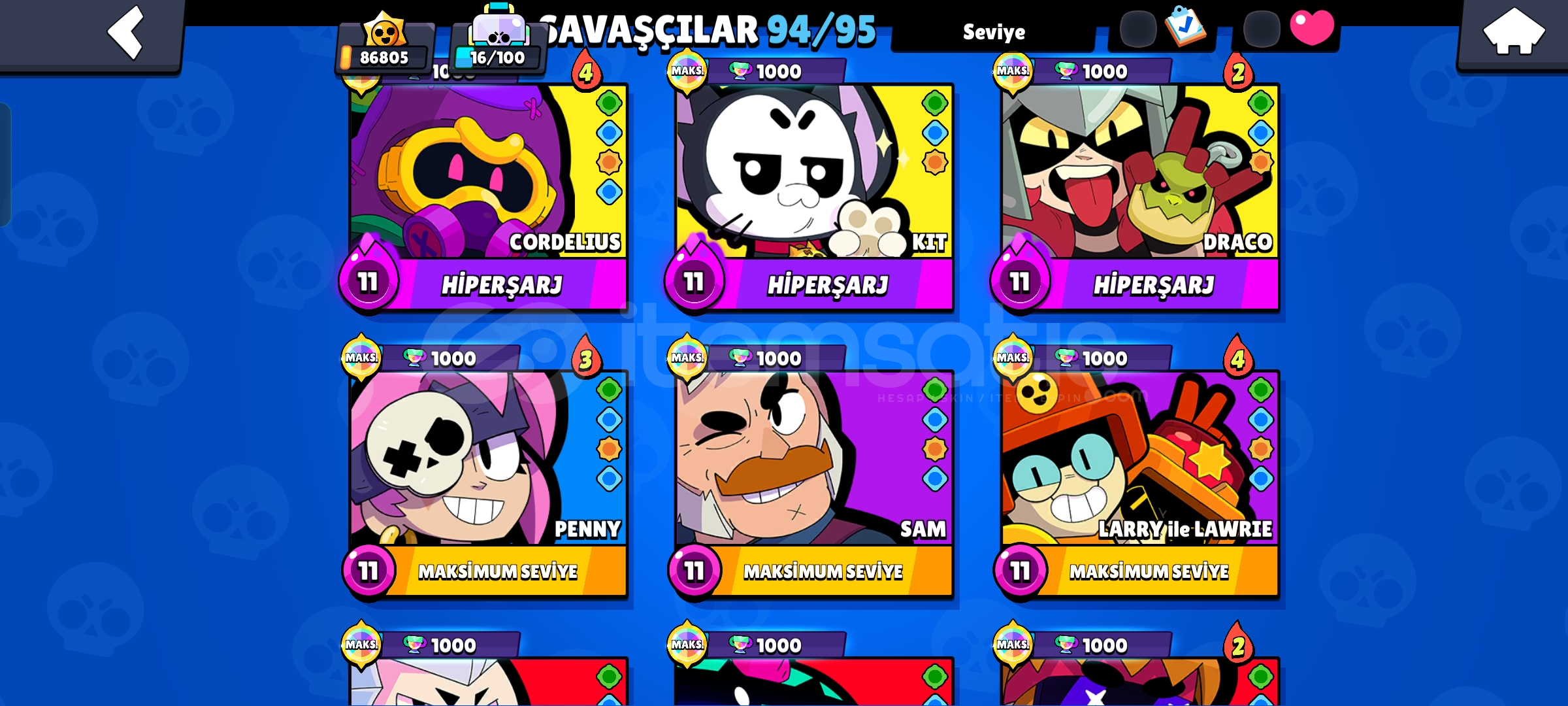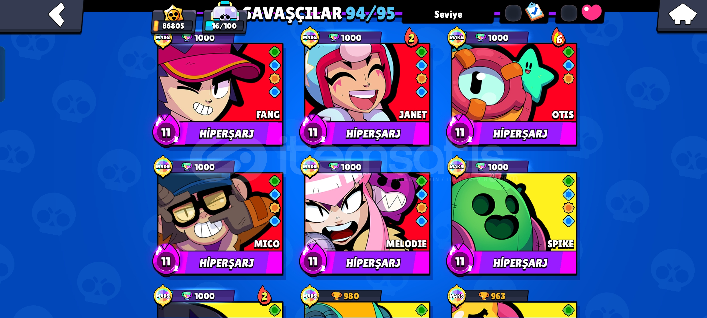 Dolu dolu hesap 58 hiperşarj 75 tane maks karakter 300 den fazla kostüm