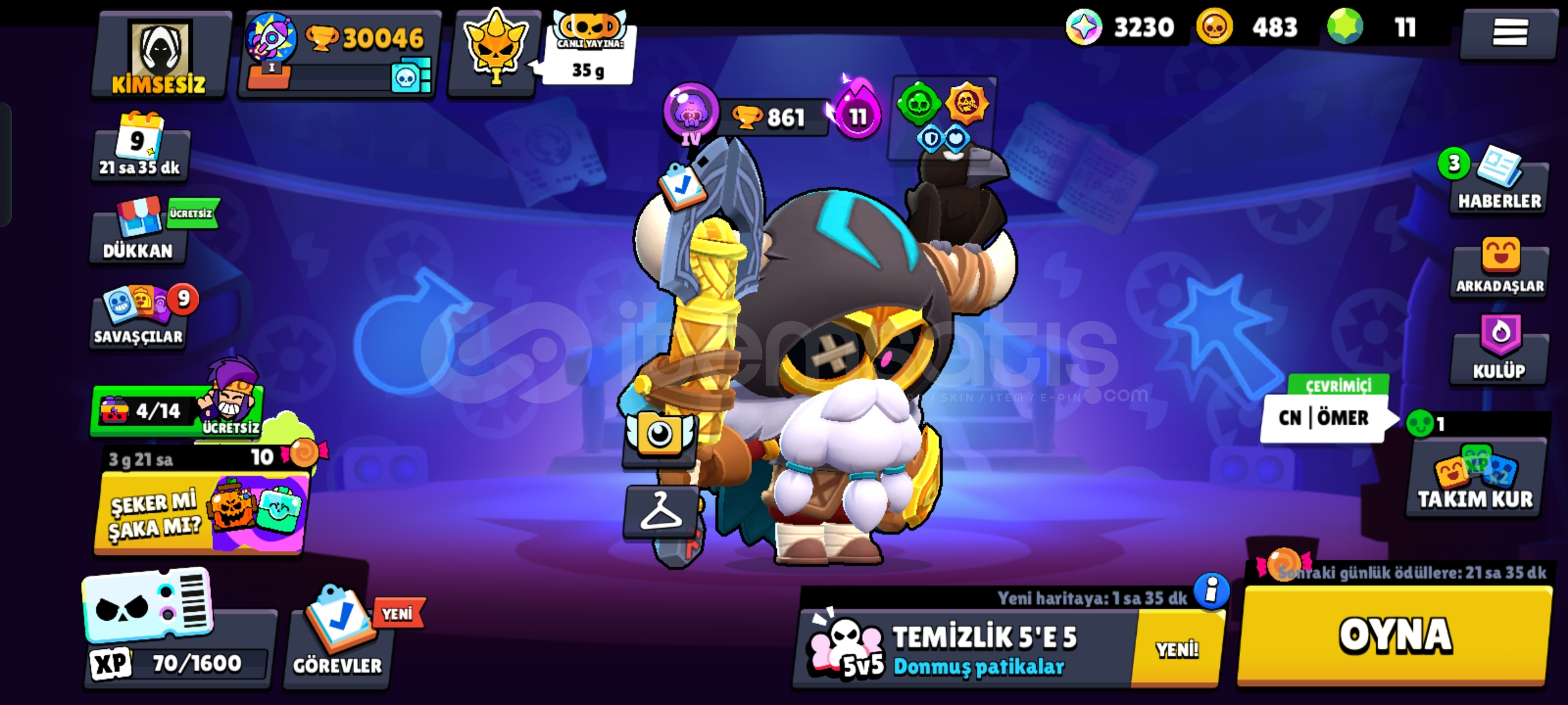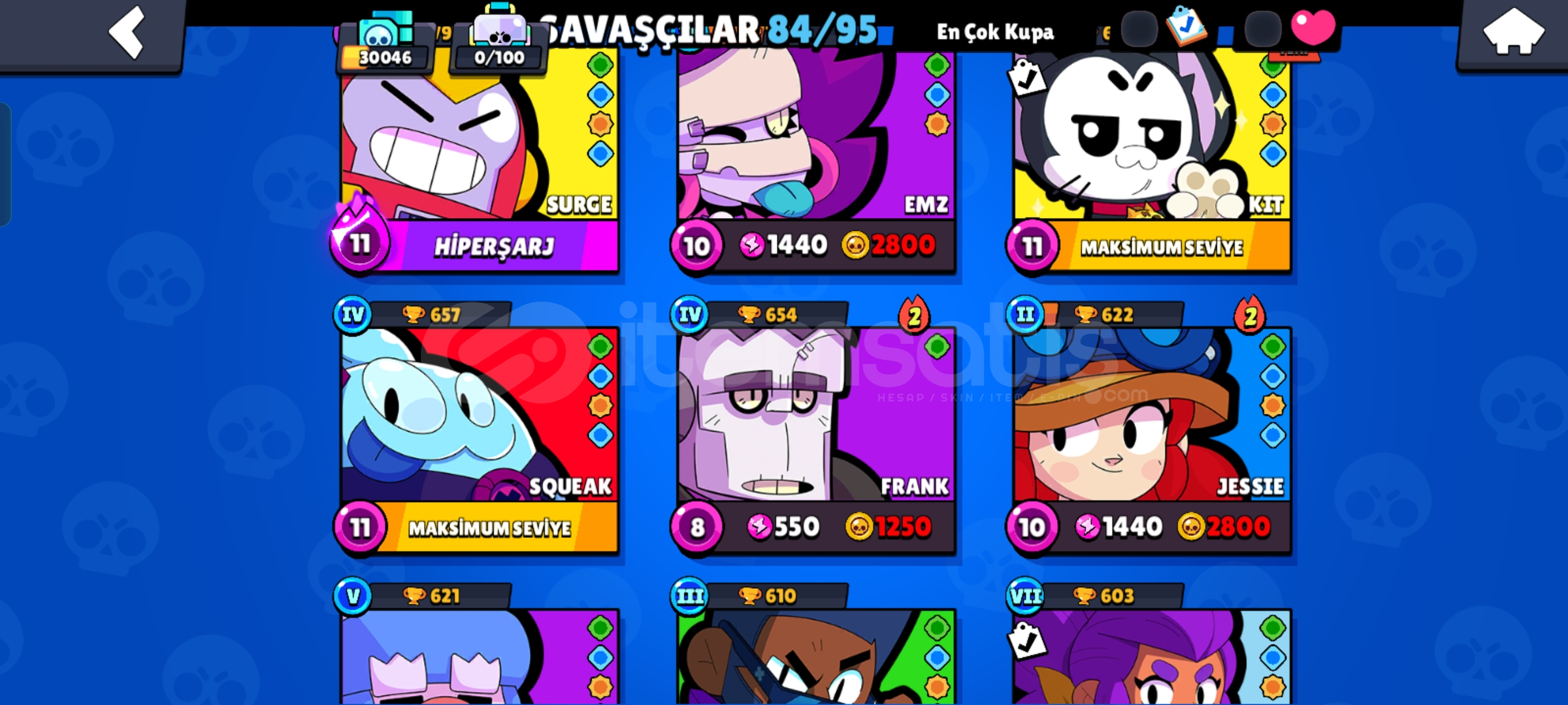 Deneyim 104 732 kupa30046 mücevher 3230 elmas 11 altın 483 hiper jarz 11 maksimum 3 güç puanı 31617 savaşcı 84 t&...