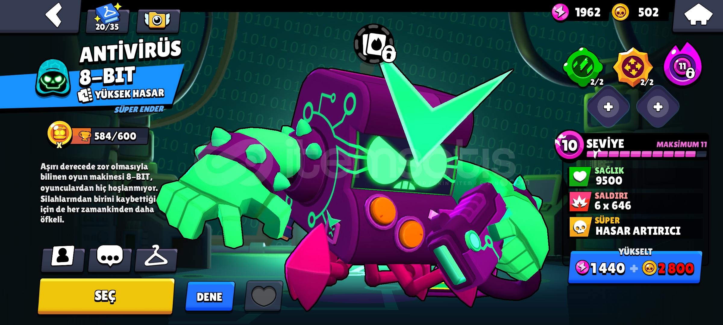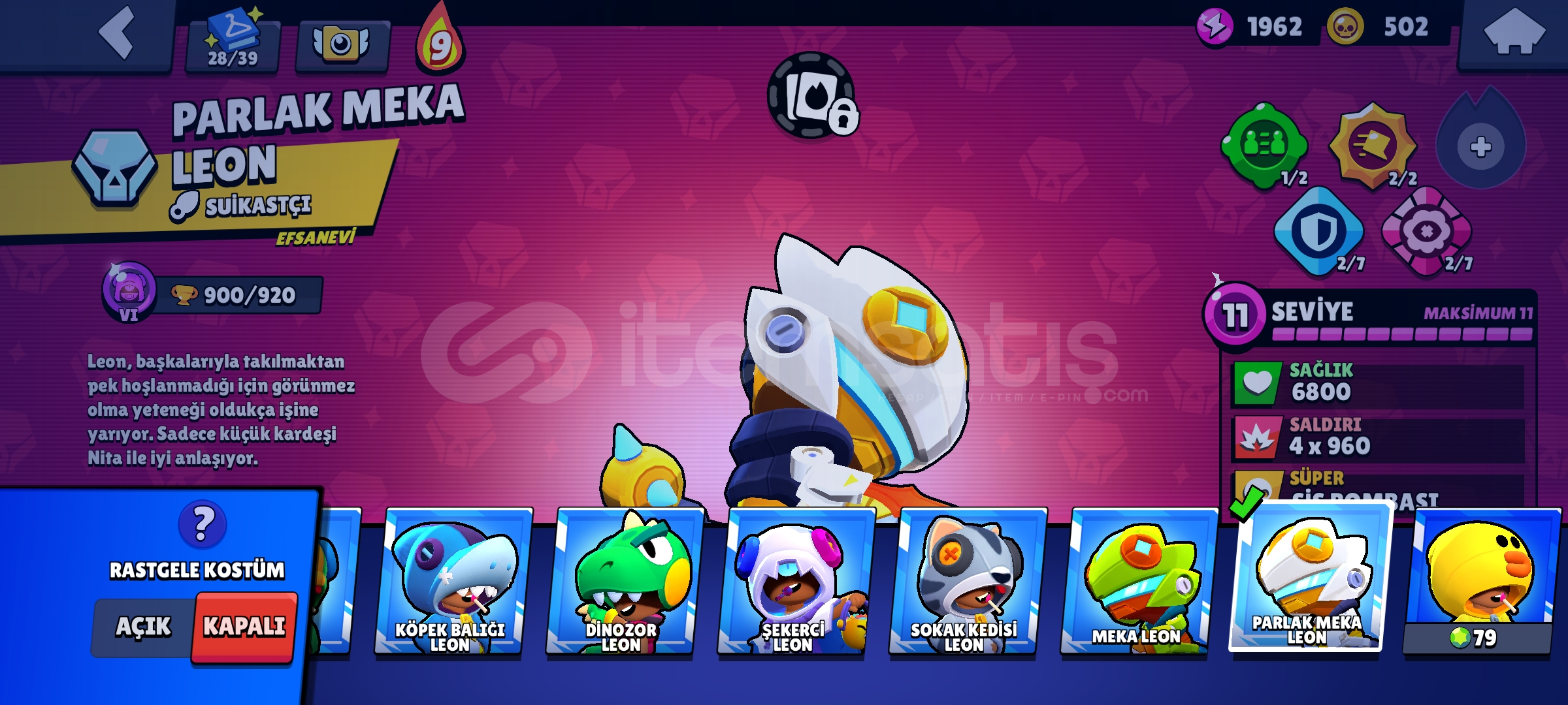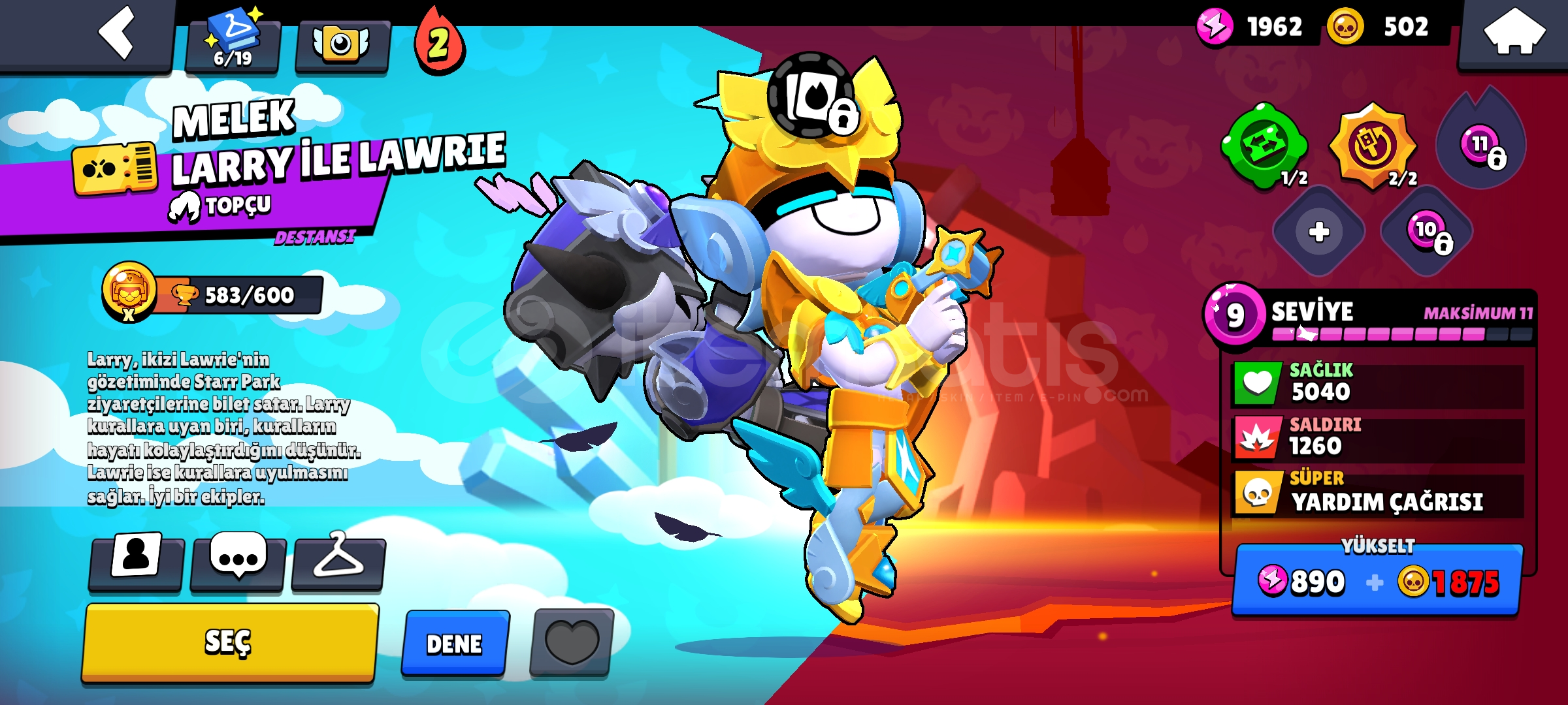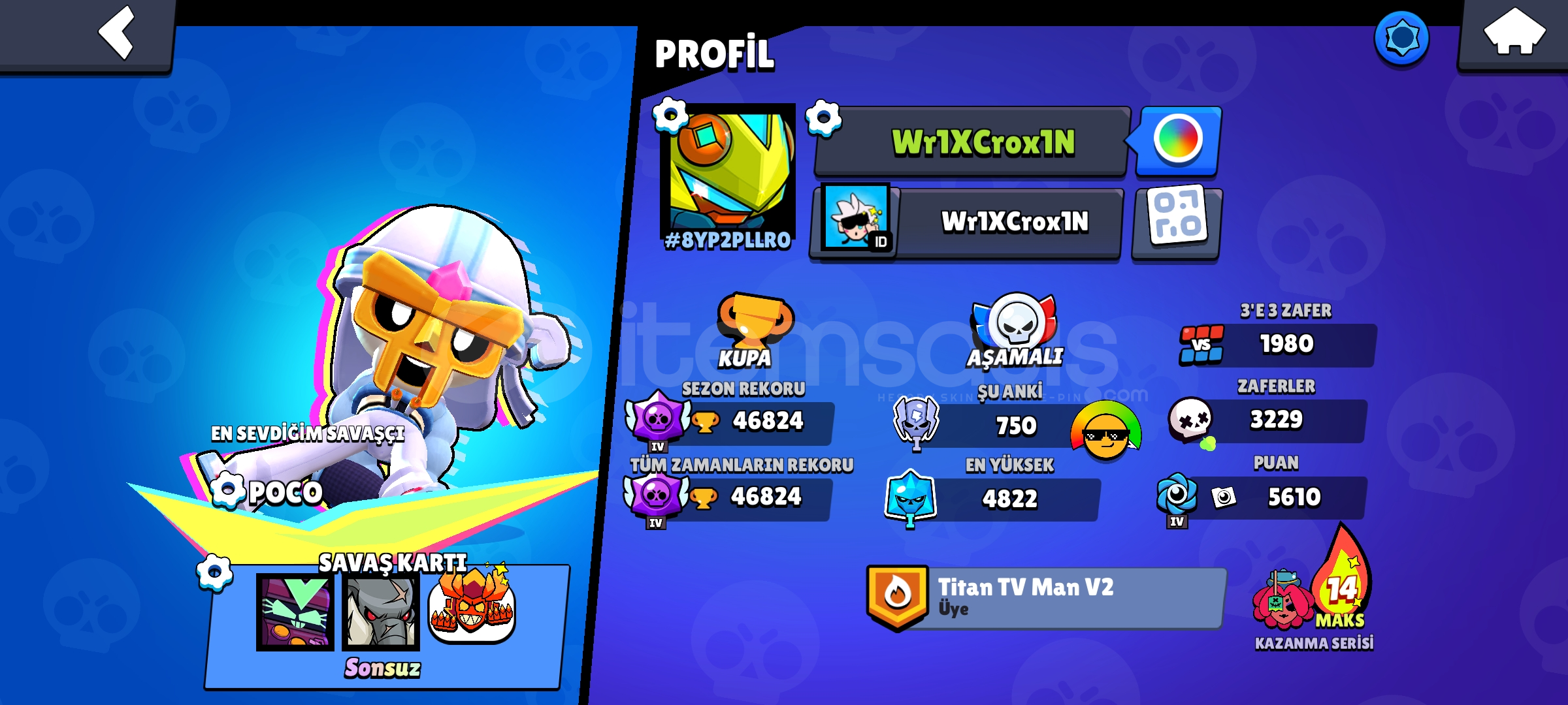 Hesapta bütün efsanevi karalterlwr ve destansılar vardır birkaç tane gizemli eksiktir. Hesapta1 kere brawl pass ve bir kere brawl pass plüs açılmıştır. Hiperşarj kostümleri ve detaylar fotoğraflardadır. 2019 da kurulmuştur. Pazarlık payı vardır ve sadece ciddi alıcılar yazsın!!