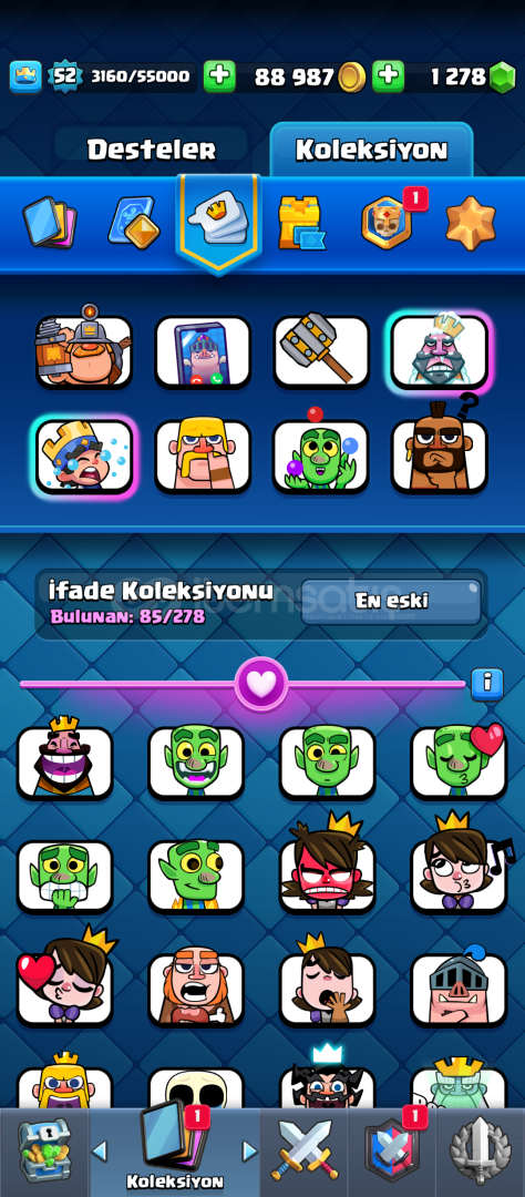 • Clash Royale hesabı bol emojili değerli emojilere sahiptir. Yüksek kupaya sahip.
