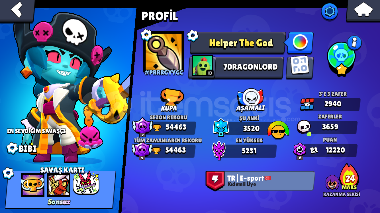 BRAWL PAS PLS AKTİFHesap ile ilgili genel bilgiler;Hesap güncel olarak 54.500 kupaya sahiptir ve hesap içerisinde bütün karakterler mevcuttur. hesaptaki en düşük seviyeli karakter 8 seviyedir. Hesap içerisindeki kostüm sayısı;68 ENDER40 SÜPER ENDER34 DESTANSI 1 Gizemli 2 Efsanevi 4 SAF GÜMÜŞ 3 SAF ALTINhesap 10.00 - 23.59 saatleri arasında satı...