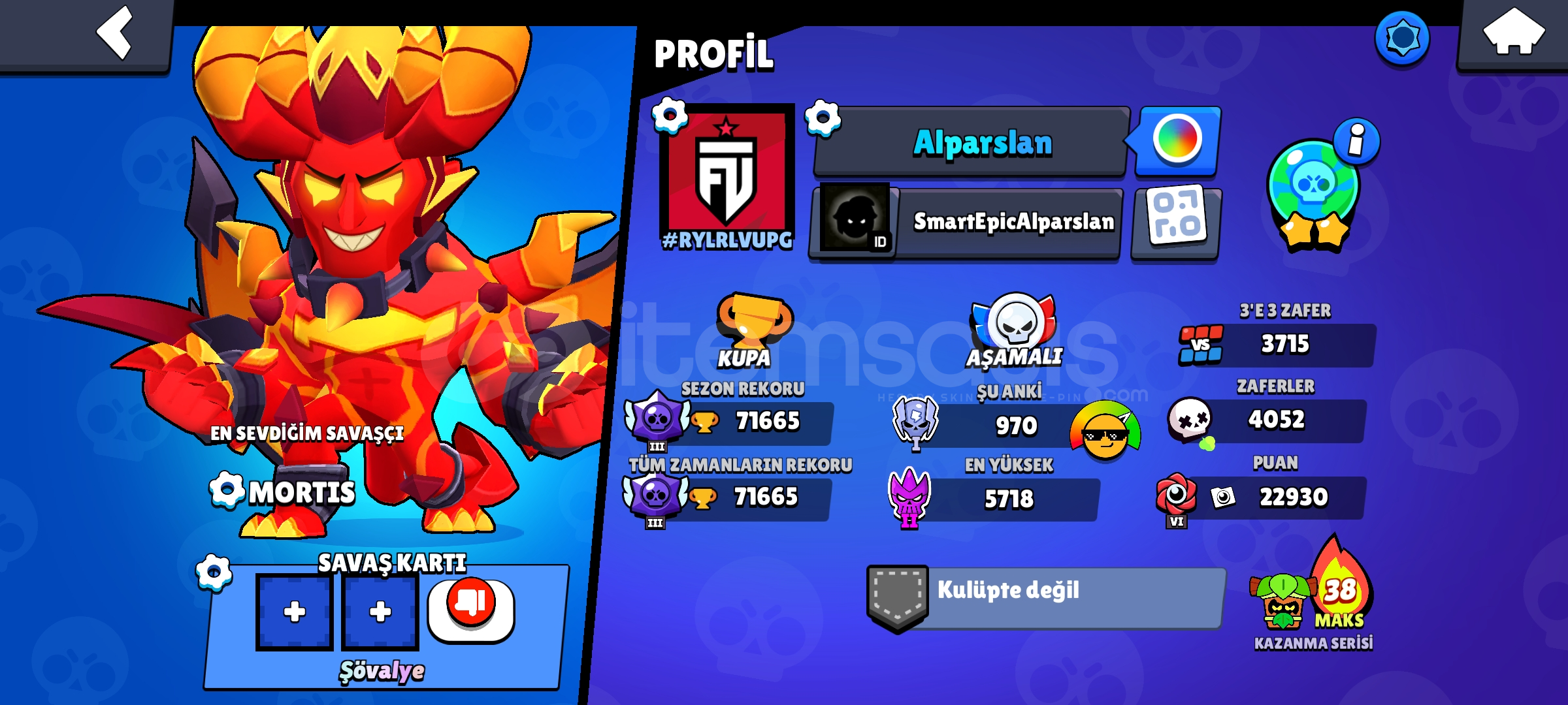 BRAWL stars efsane hesap 71.500 kupa tum karakterler acik 96da 96 karakter 3 efsanevi 3 saf altin kostum siralamaya kasmalik hesap