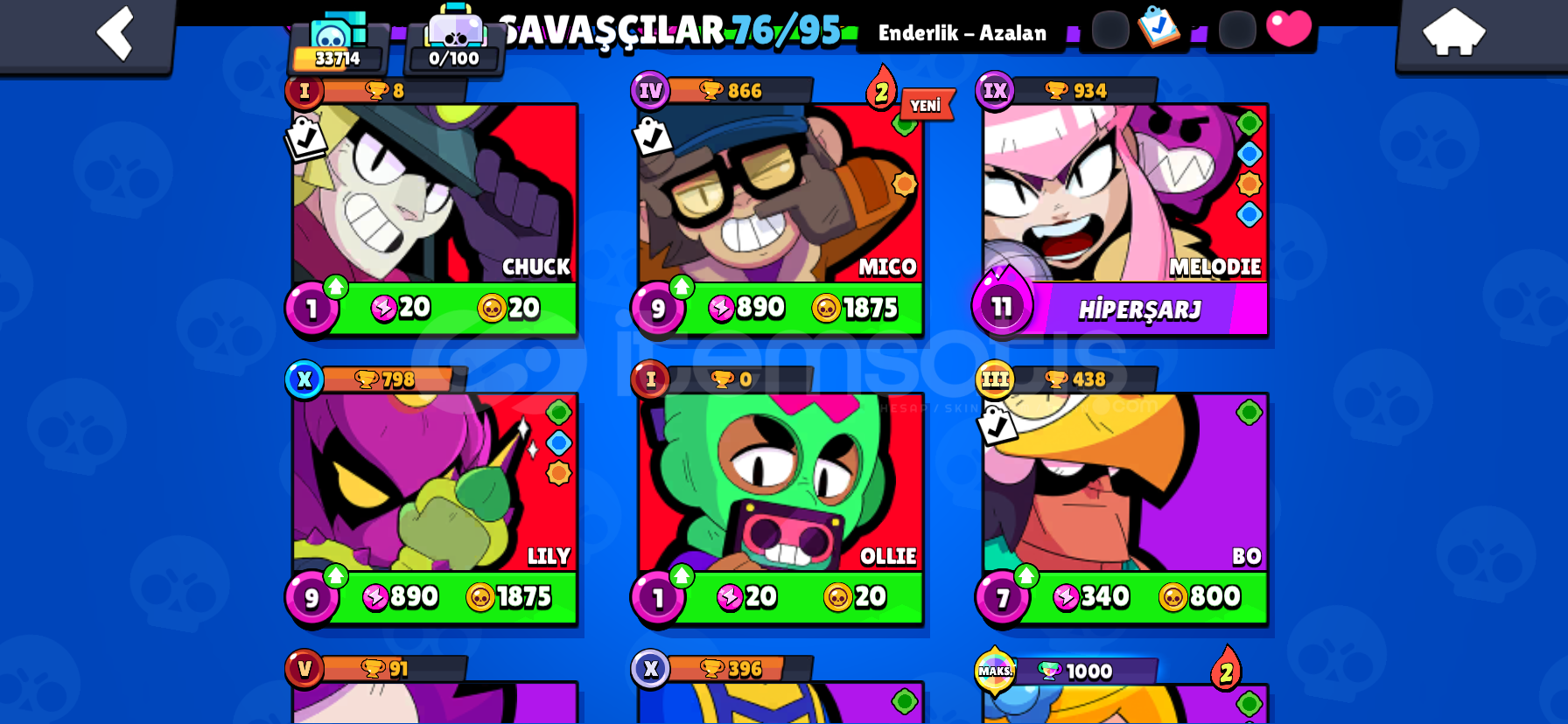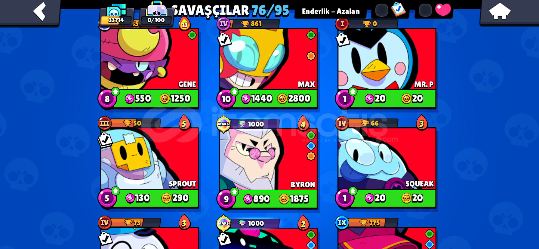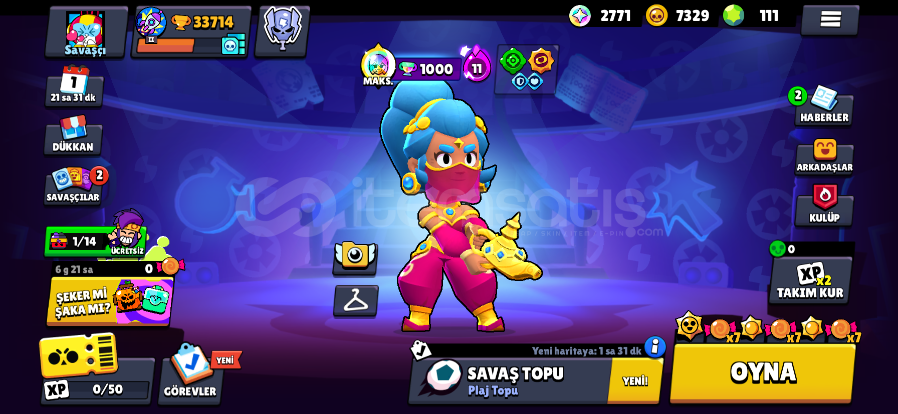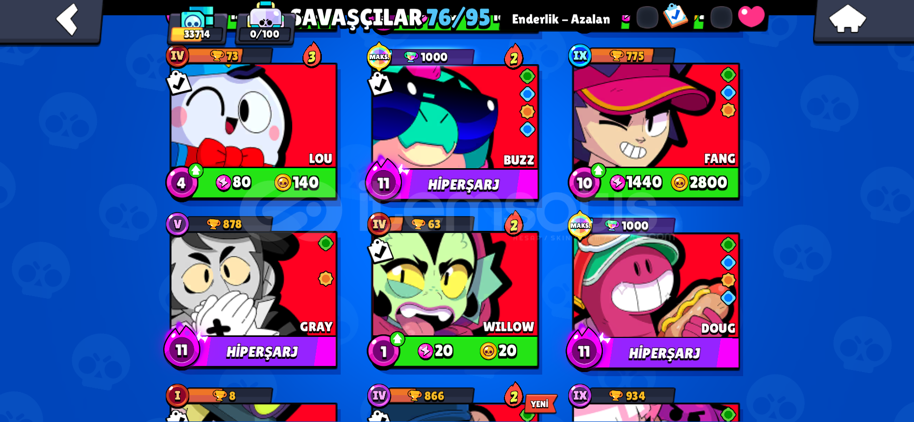 hesapta 111 taş 7k altın var25 karekter 100 kupa ve altında10 karekter max rütbe 1000 kupa2 kere brawl pass alınmış...
