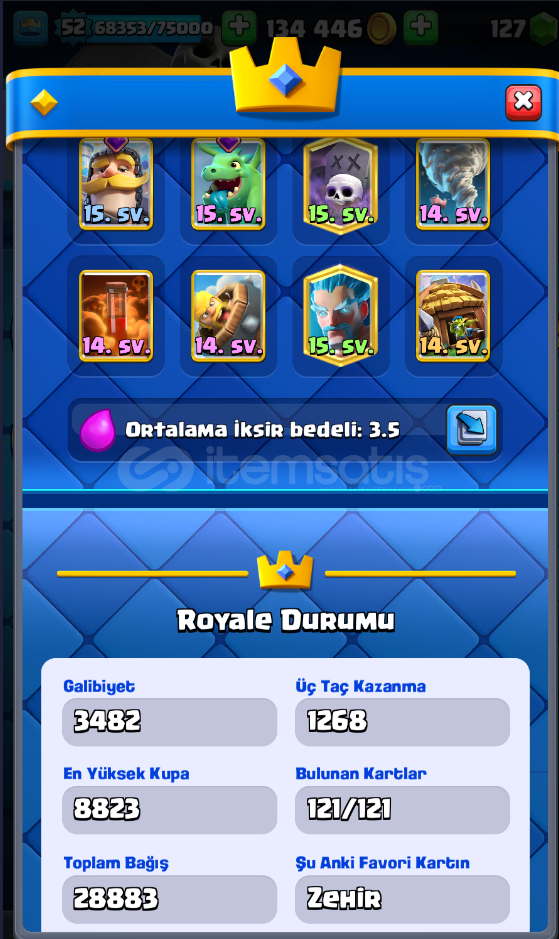 FULL EMEK BS VE CR MAİNLİK SUPERCELL BAGLI HESAPTIR PAZARLIK SÜNNETTİR.