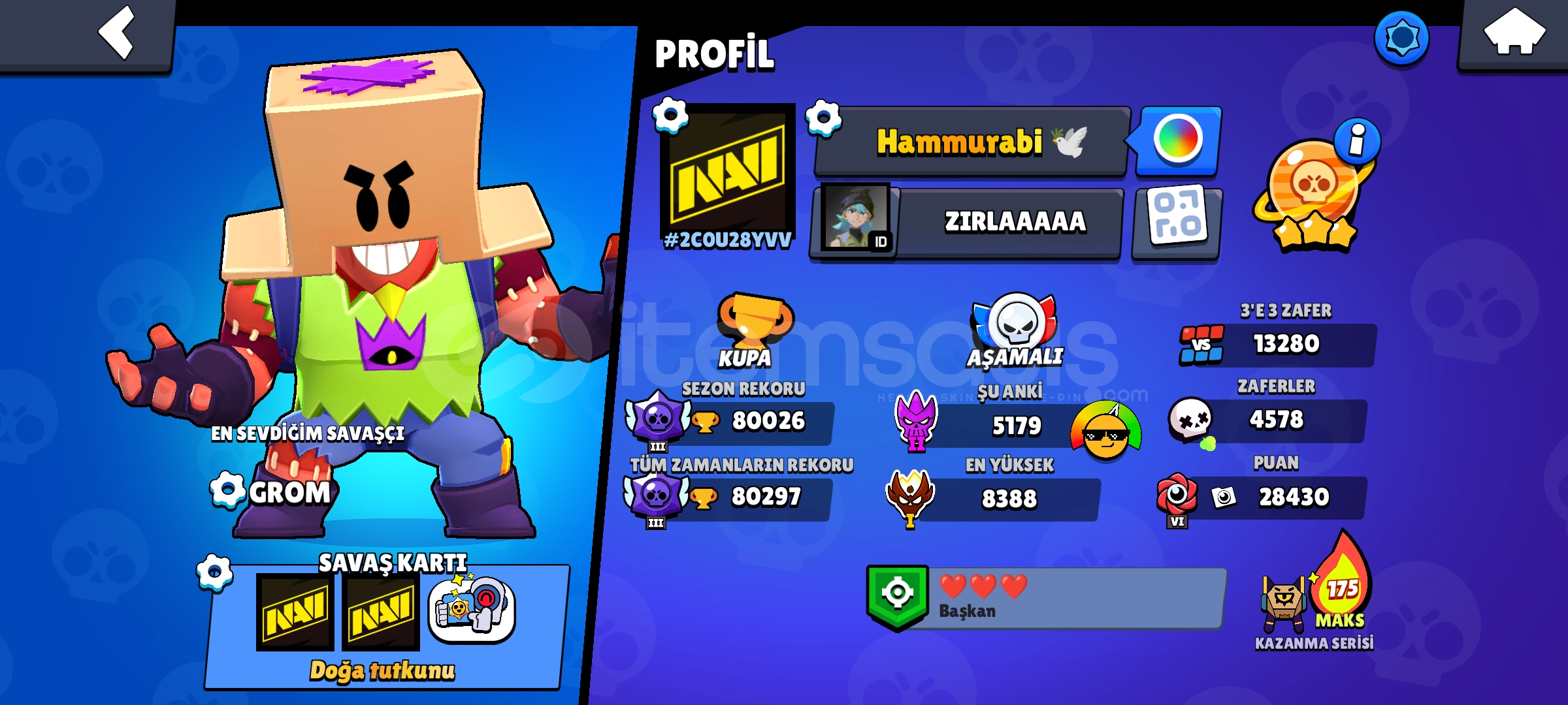 🔹 En Yüksek Kupa:80297🔹 Güncel Kupa:80026 🔹 3v3:13280🔹 Karakter Sayısı:95🔹 11 Seviye Sayısı:53🔹 Hiperşarj Sayısı:56🔹 2025 Master Sayısı:1 Kere 🔹 Ünvan Sayısı (Bp\Ustalık):11/8 (19)🔹 Şöhret: Satürn 3 Güneşe 1 k Kredi 🔹 Hesaba Özel indirimli teklifler fırsatı 🔹12 BP açılmışt&#...