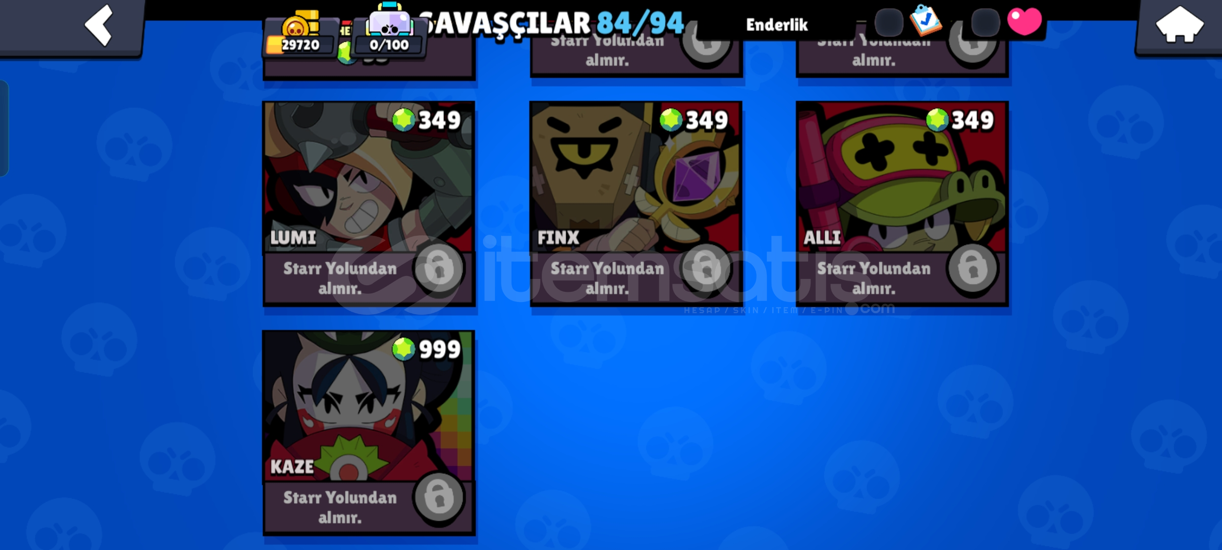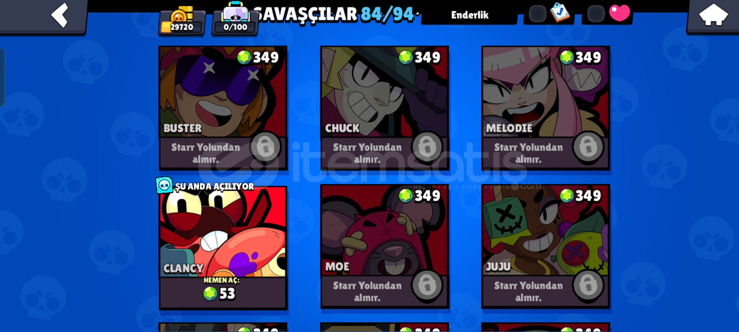 55 ender kostüm30 süper ender kostüm23 destansı kostüm2 gizemli kostüm (Fangardiyan ve squat buster shelly)2 efsanevi kostüm (beyaz meka bo ve surge ışıkyılı)2 hiperşarjlı kostüm (elmas hükümdar Rico ve hükümdar Rico)27.720 kupa 1021 mücevher 3500 altın 52 elmas mevcuttur hesapta12 efsanvi karakter (3 hiperşarj-spike-crow-leon 1 maksimum-sandy)24 gizemli karakter(1 hiperşarj-buzz 1 ...