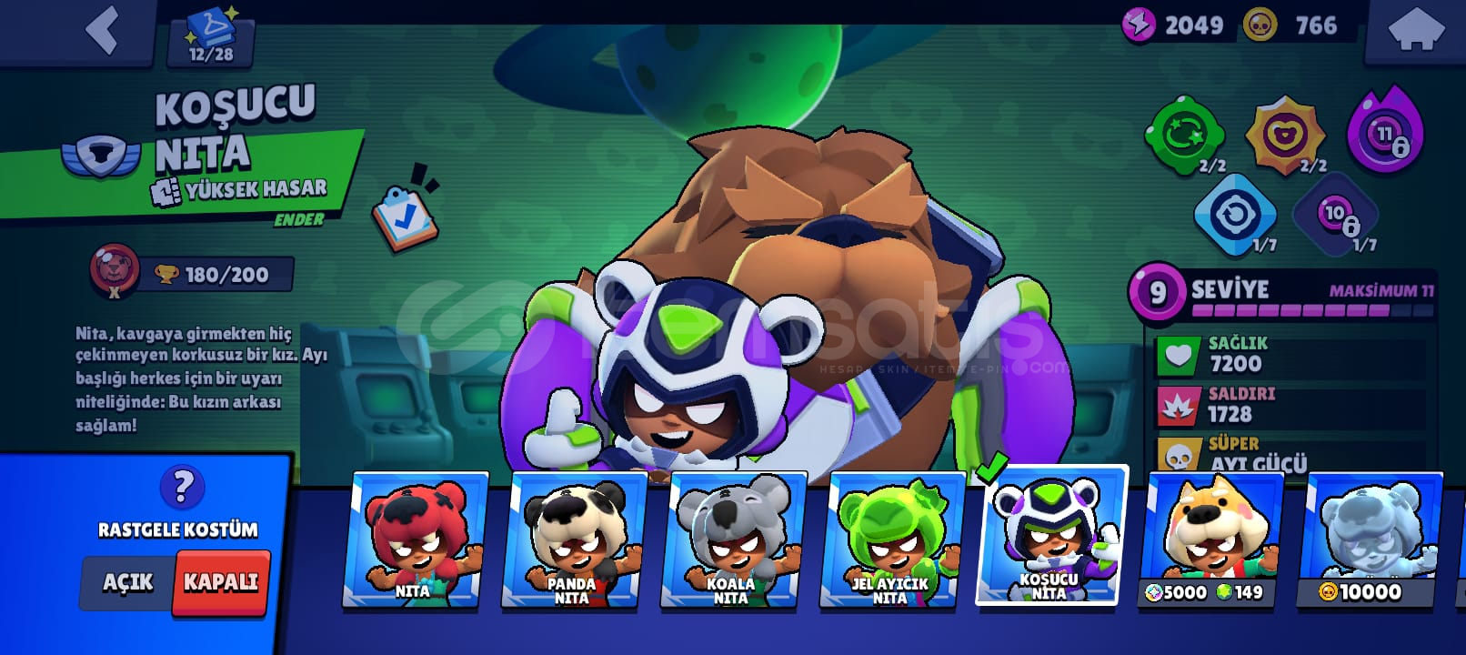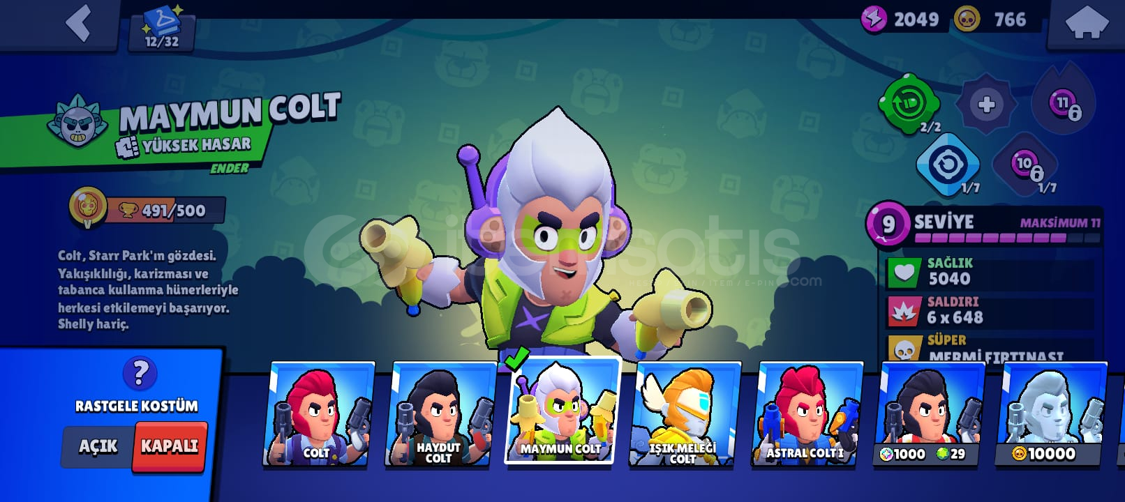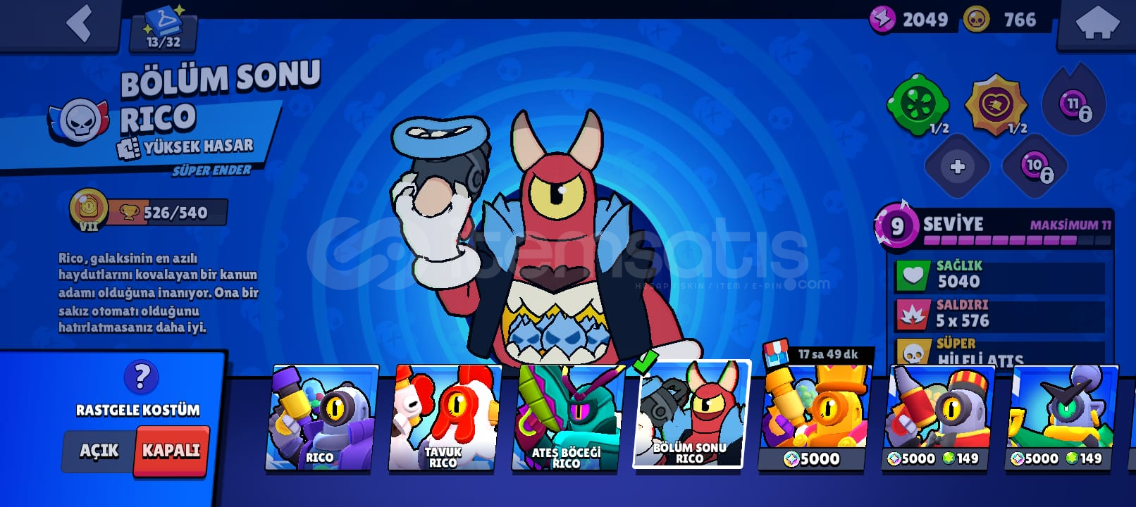 Brawl Stars 9000 kupa 36 karakterli hesap hesaptaki diğer kostümler: Yılbaşı Bo Vampir Bea Bea Byte Çan Nani Galaksi Fırtınası Lola Beyaz Crow