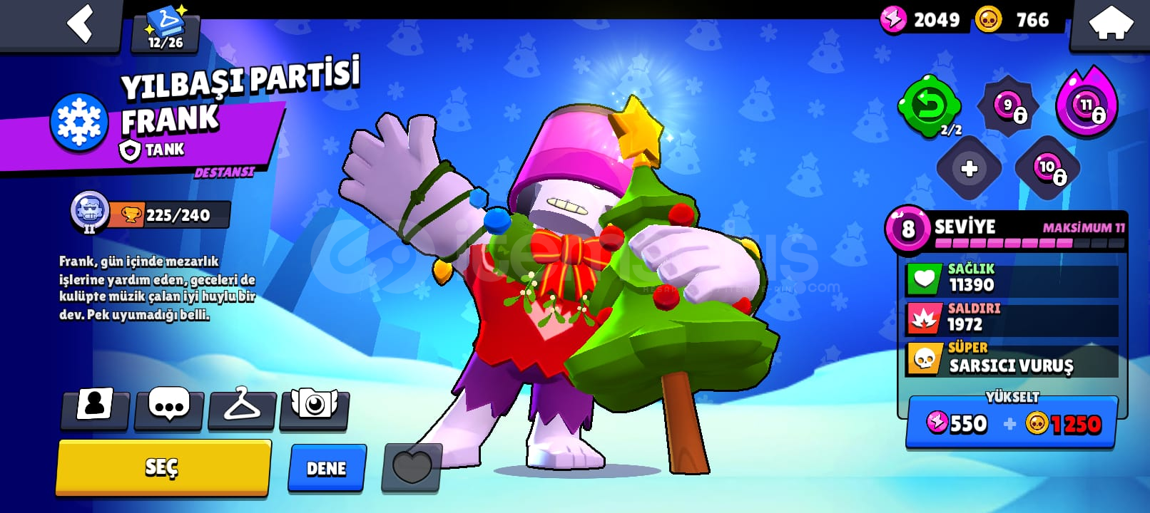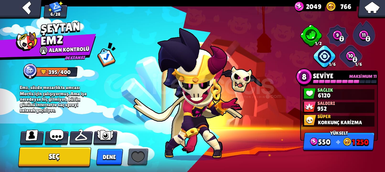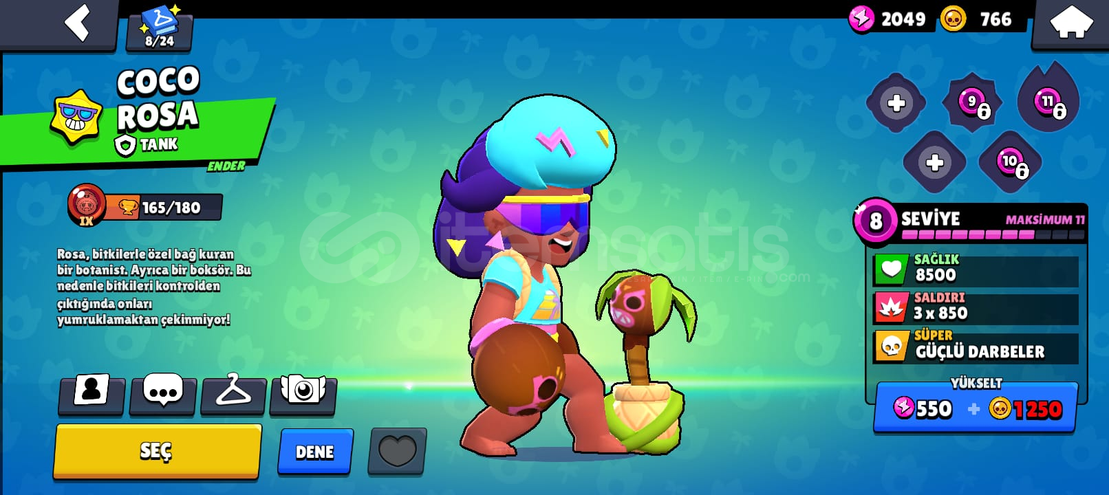 Brawl Stars 9000 kupa 36 karakterli hesap hesaptaki diğer kostümler: Yılbaşı Bo Vampir Bea Bea Byte Çan Nani Galaksi Fırtınası Lola Beyaz Crow
