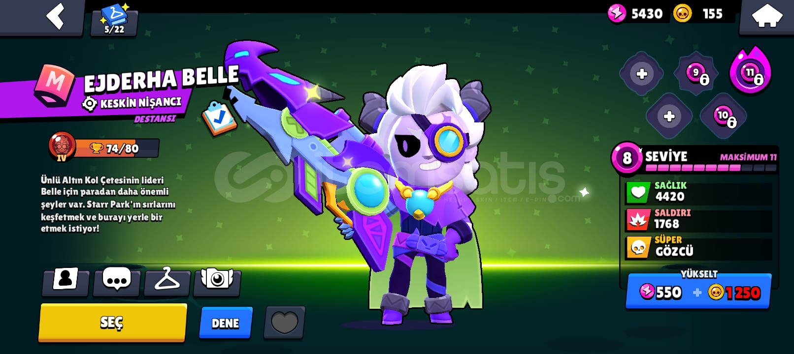 hesaptaki diğer köstümler: El Mayordomo Primo Maskot Darryl Mürekkep Balığı Jacky Ho Ho Ho Bo Doktor Edgar Şık Lou Dinozor Leon Surge Işıkyılı Orman Ruhu Chester hesapta 48 karakter var: 4 Efsanevi 6 Gizemli 19 Destansı karakter var Elimden Geldiği Kadar İndirim Yaparım.