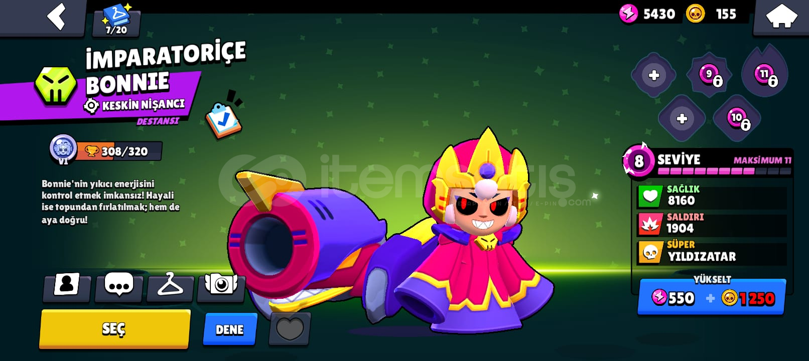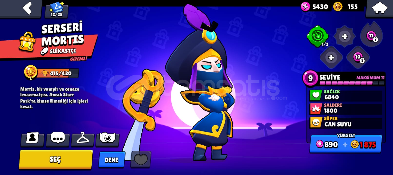 hesapta 48 karakter var: 4 Efsanevi 6 Gizemli 19 Destansı karakter var