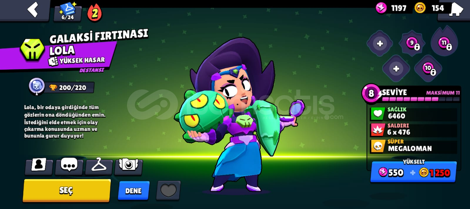 Hesapta 36 karakter var: 1 Efsane 5 Gizemli 11 Destansı karakter