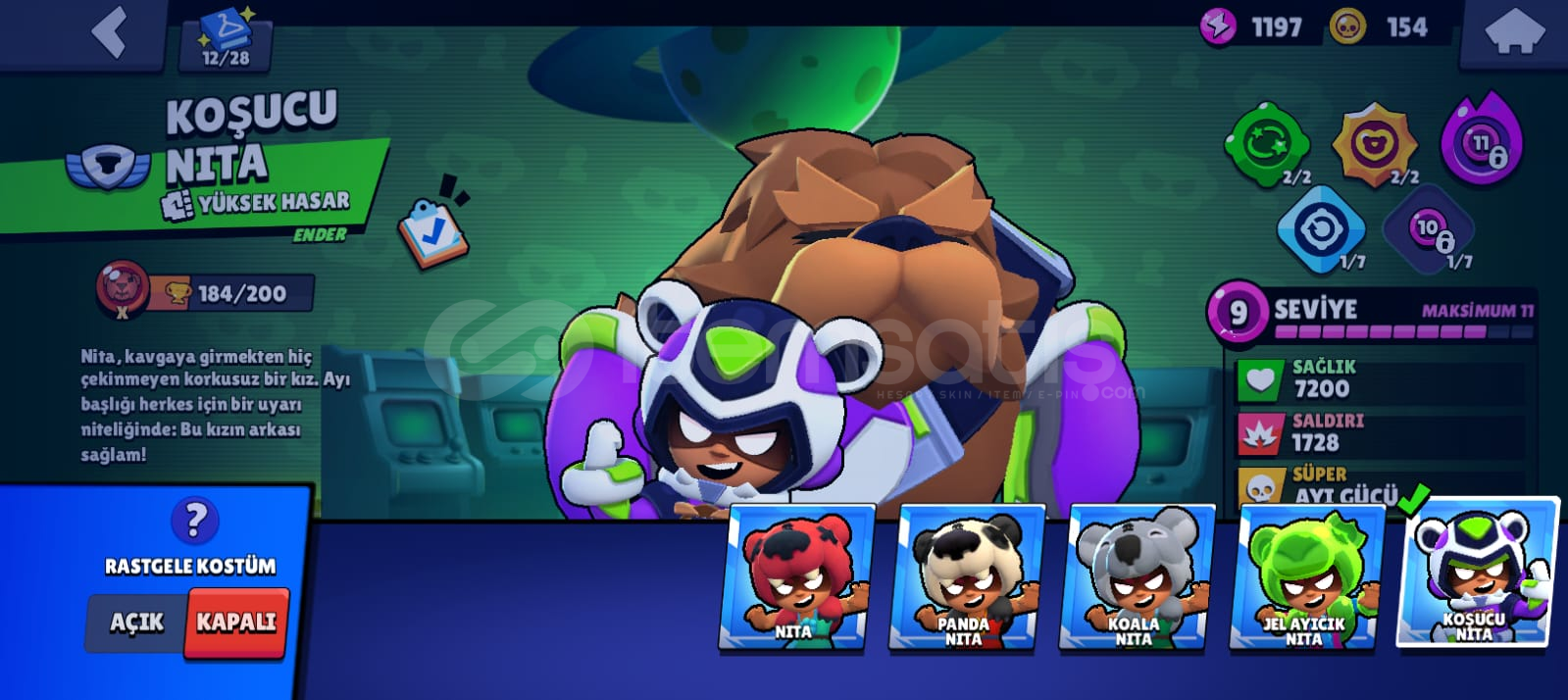 hesaptaki diğer kostümler: Yılbaşı Partisi Frank Bea Byte Serseri Mortis Ho Ho Ho Bo Maskot Darryl Çürüyen Dynamike Romantik Dynamike El Mayordomo Primo Hesapta 36 karakter var: 1 Efsane 5 Gizemli 11 Destansı karakterElimden Geldiği Kadar İndirim yaparım