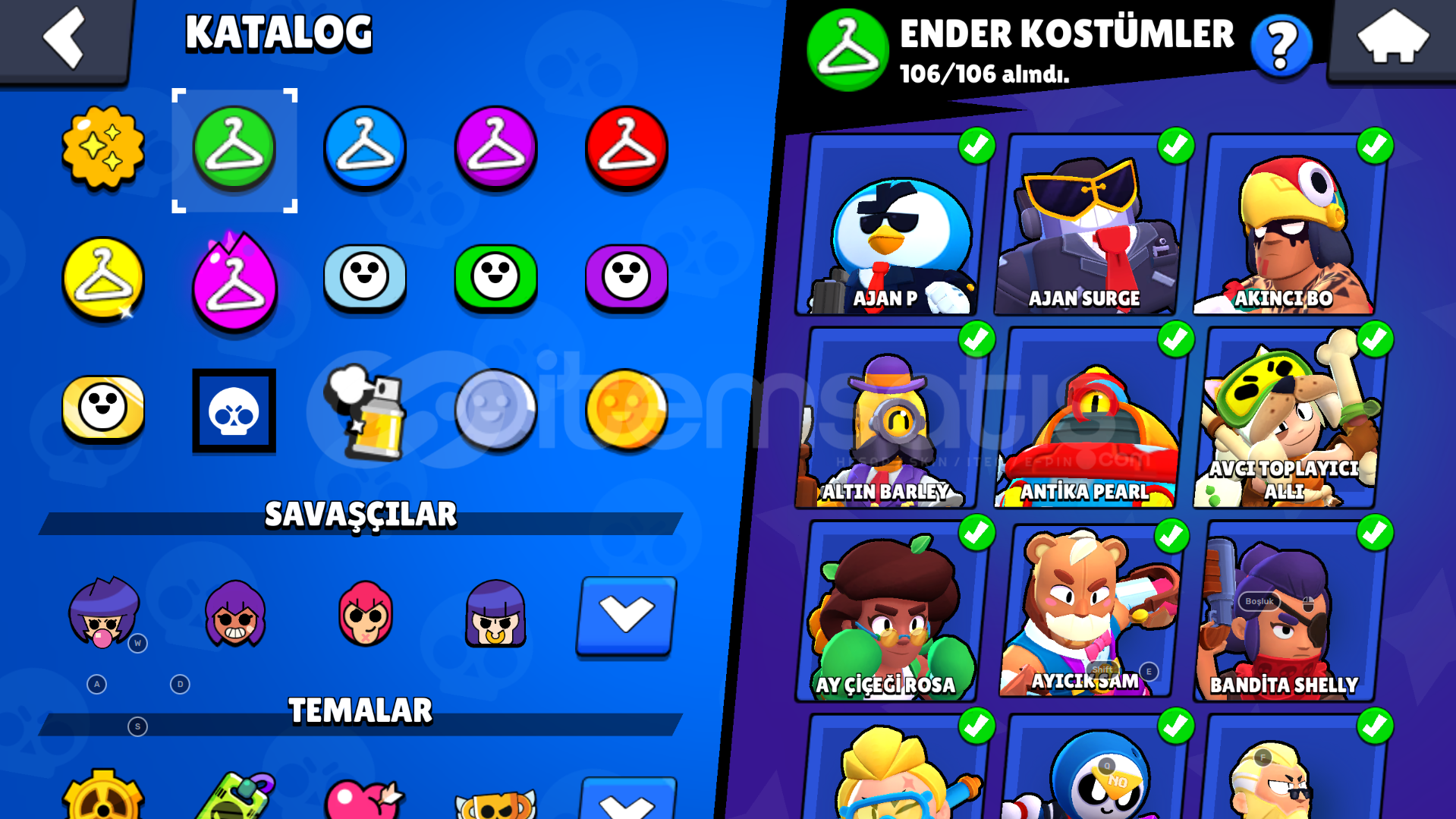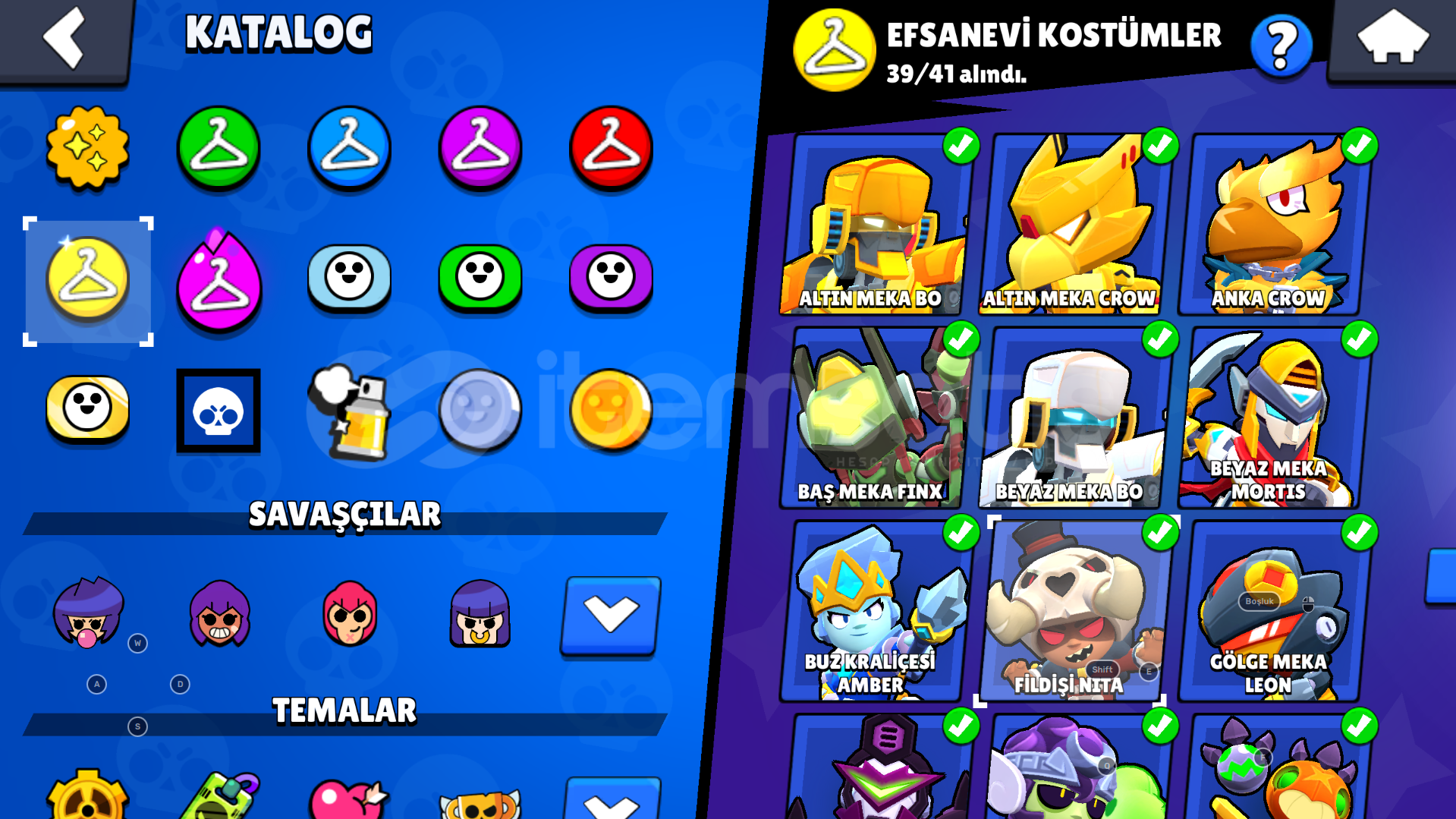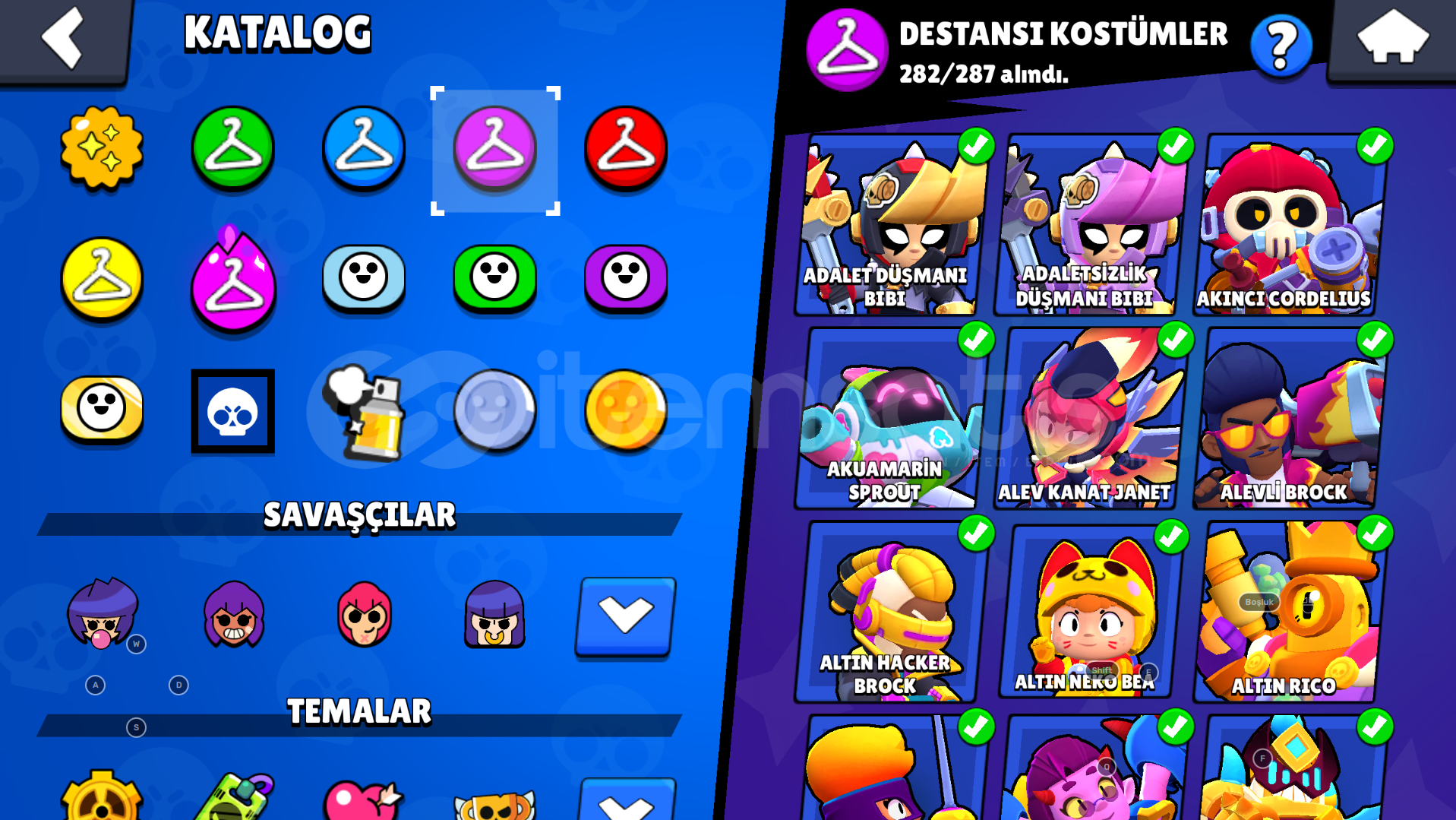 hesap içerisinde oyunun bütün kostümleri satın alınmıştır.