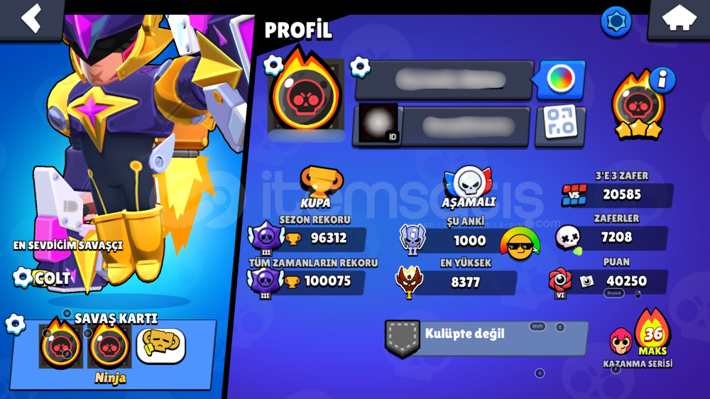 Hesap ile ilgili genel bilgiler;Hesap güncel olarak 96.482 kupaya sahiptir ve hesap içerisinde bütün karakterler mevcuttur. hesaptaki en düşük seviyeli karakter 11 seviyedir. hesap meteor 3 şöhretindedir.hesap içerisinde oyunun bütün kostümleri satın alınmıştır.Hesap içerisindeki kostüm sayısı;106 ender117 süper...