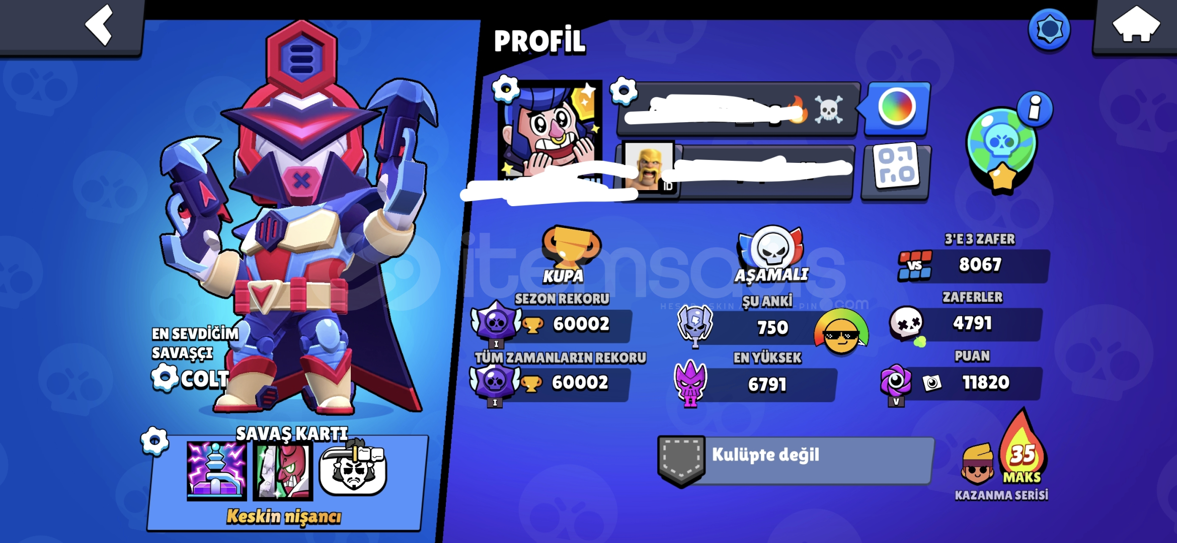 Hesabımiz 60 bin kupa dir mail değişiyor para lazım o yüzden satıyorum ciddi alıcılar yazsın hesapta hi&c...