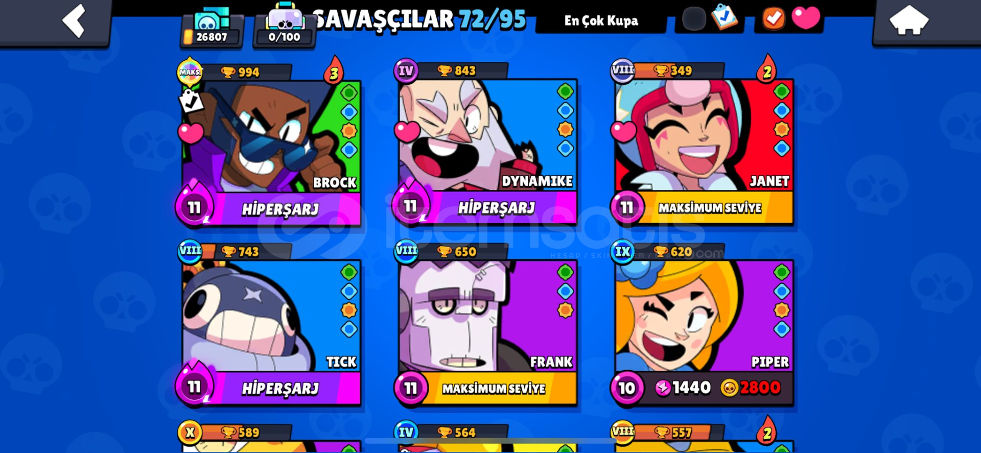 Brawl stars hesabımı satıyorum. artık yeterli şekilde oynadım. Mail deviri olacaktır. Fiyatta pazarlık yapabiliriz.2019da kuruldu hesap. 26,807 kupa72 karakter var1000 kupa brock var sadecekostüm sayısı: 109 (neler olduğunu sorabilirsin)tam olarak kasmalık hesap çoğu karakterin kupası düşük ve dereceli seviyeside düşük.seviye basmak için 19000 yükseltme puanı var ve &c...