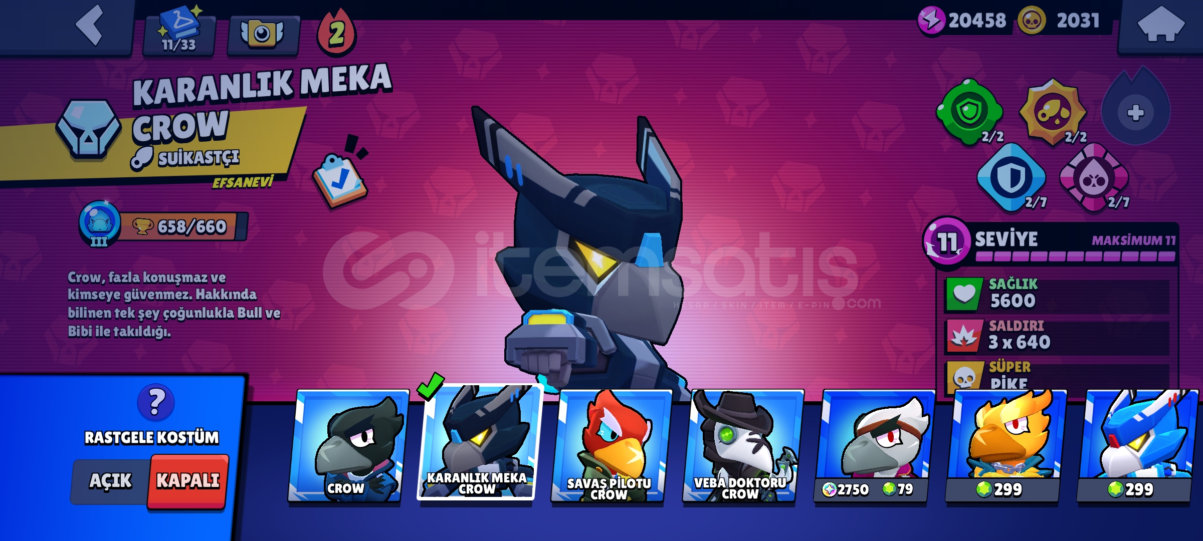 • Maks Seviye Güçlü Karakterler: Crow (Max. Seviye 11), Leon (Max. Seviye 11), Mortis (Max. Seviye 11), Kenji (Max. Seviye 11) gibi en güçlü karakterler mevcuttur.