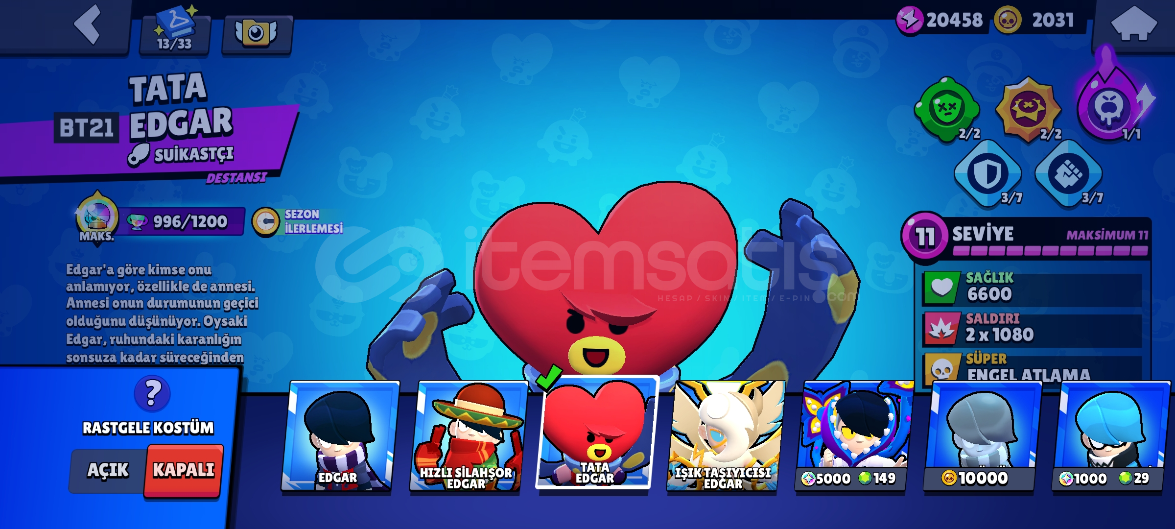 ​Bu hesap, nadir kostümler ve güçlü karakterlerle dolu, emek verilmiş bir hesaptır. Hemen alıp Brawl Stars'ın keyfini sürmeye başlayabilirsiniz!