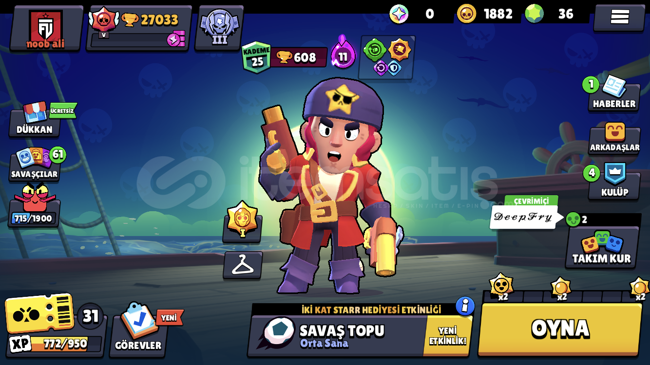 Pazarlık yapılır makul bir fiyatta hesabın ederi daha fazla ama acil satmak durumundayım (telefon borcu) hesabın içerisinde çok sayıda skin vardır ve skinler gerçekten değerli skinlerdirburada gösteremediğim daha 90 tan fazla güzel skin vardır