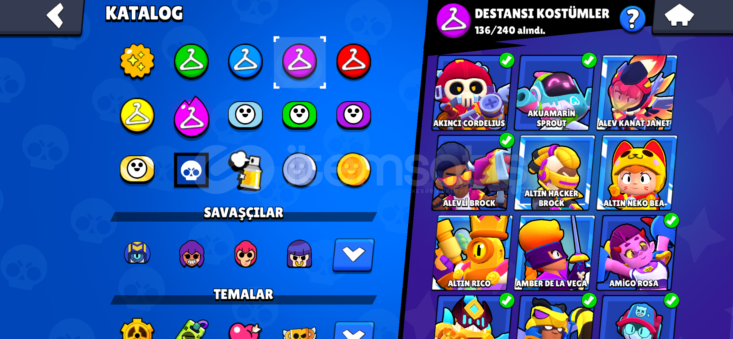 Uzun yıllar emek verilmiş, üst seviye ve koleksiyon değeri çok yüksek Brawl Stars hesabı satılıktır. Bu seviyede hesaplar piyasada çok nadir bulunur.🏆 HESAP GENEL BİLGİLERİ:🏆 Toplam Kupa: 95.000🌌 Şöhret Seviyesi: Mars 3⭐ Göktalı şöhretine son 3.500 kredi👤 Tüm karakterler açık ve FULL📊 Deneyim Seviyesi: 230🎭 KOSTÜM KOL...