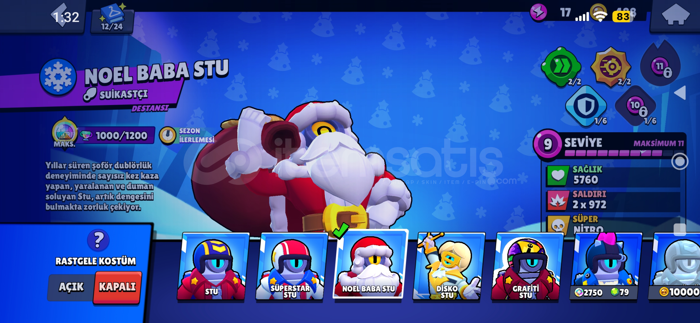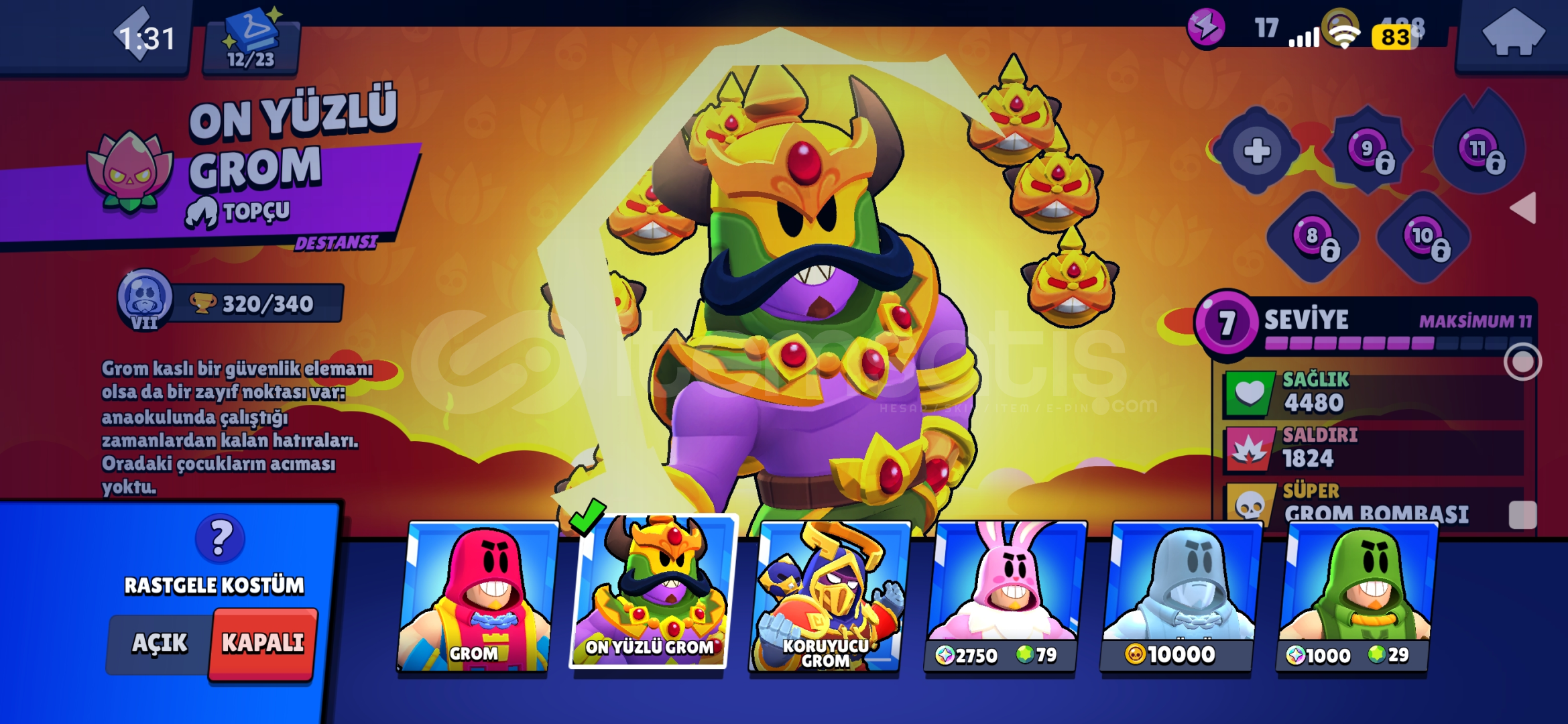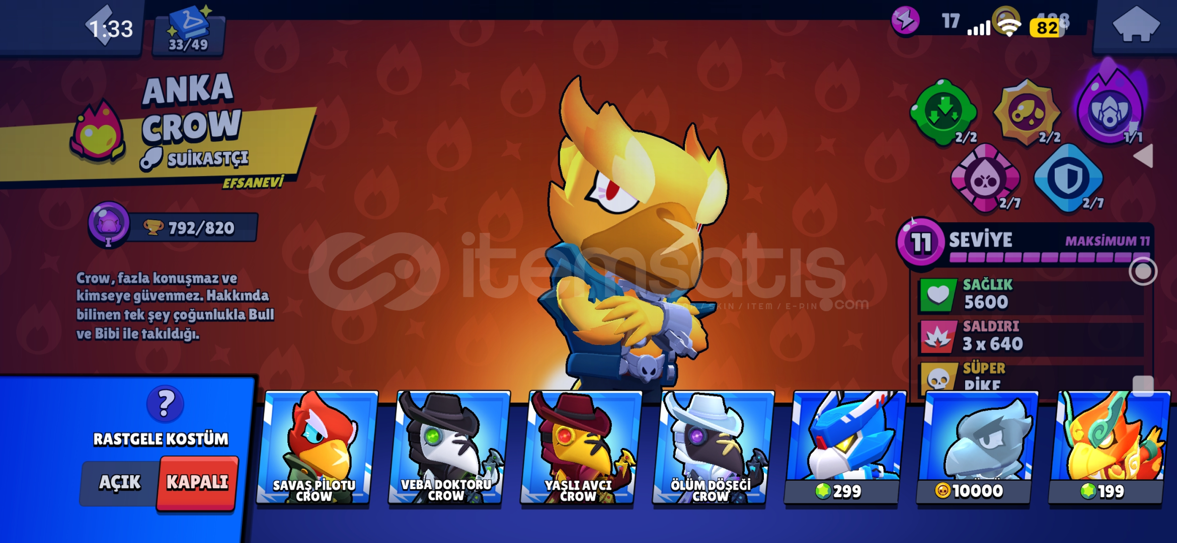 Hesabımiz güzeldir mail değişiyor 94 karakter vardır pazarlık olmaz indirim istemeyiniz hesapta sorun çıkmaz çıkarsa hemen mudale ediyoruz hesabımda pro pass fulenmiş tir 15 plus aciktir. Korsan Colt şeytan mortis anka crow gibi nadir kostümler var böyle hesap bidaha gelmez indirim kesinikle yapmiyacagim clash of Royal hesabida bağlıdır 6589 bin kupa falan royall hesabında 3.4 tane kart eksik geris...