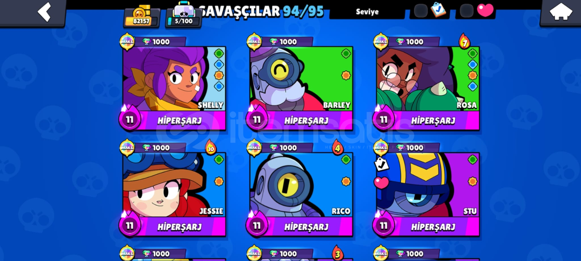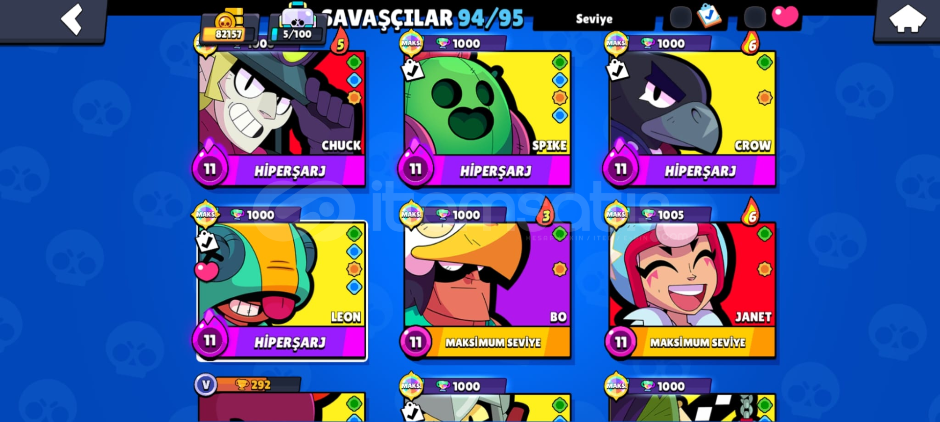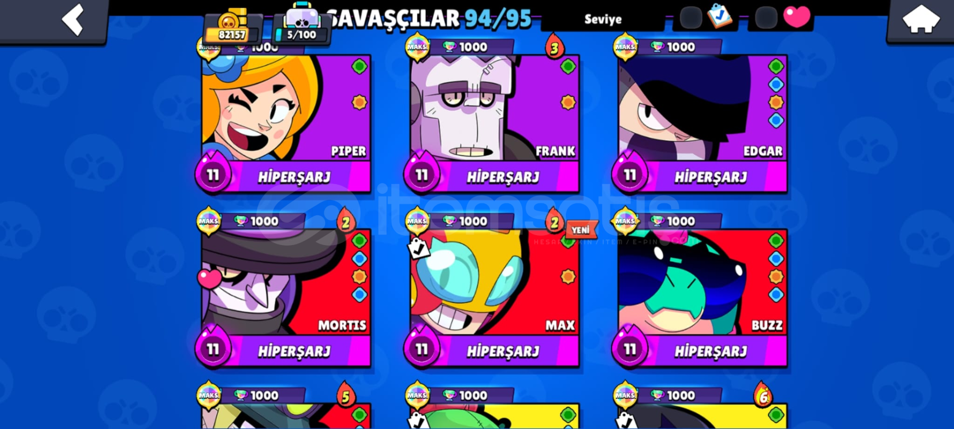 Hesap Açılma Tarihi: 2021Toplam Kupa :82.157En Yüksek Aşamalı: Efsanevi 2Kayıt Seviyesi :Gizemli 5Mars 1 ŞöhretToplam 94 Karakter 33 Karakterde Hiperşarj var82 Karakter 1K KupaEnder Kostüm :80 AdetSüper Ender Kostüm:70 AdetDestansı Kostüm :50 AdetGizemli Kostüm: 7 AdetEfsanevi Kostüm :7 AdetHiperşarj Kostüm :2 AdetSaf Gümüş Kostüm :1 AdetSaf Altın Kostüm:1 AdetKoleksiyon roze...