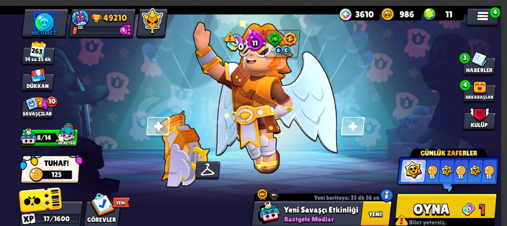 hesapta daha fotograflarda olmayan bır suru sey var hesaba 7 kere brawl pass 4 kere plus alınmıştır bır suru skın vardır 3 tane 1k karakter vardır