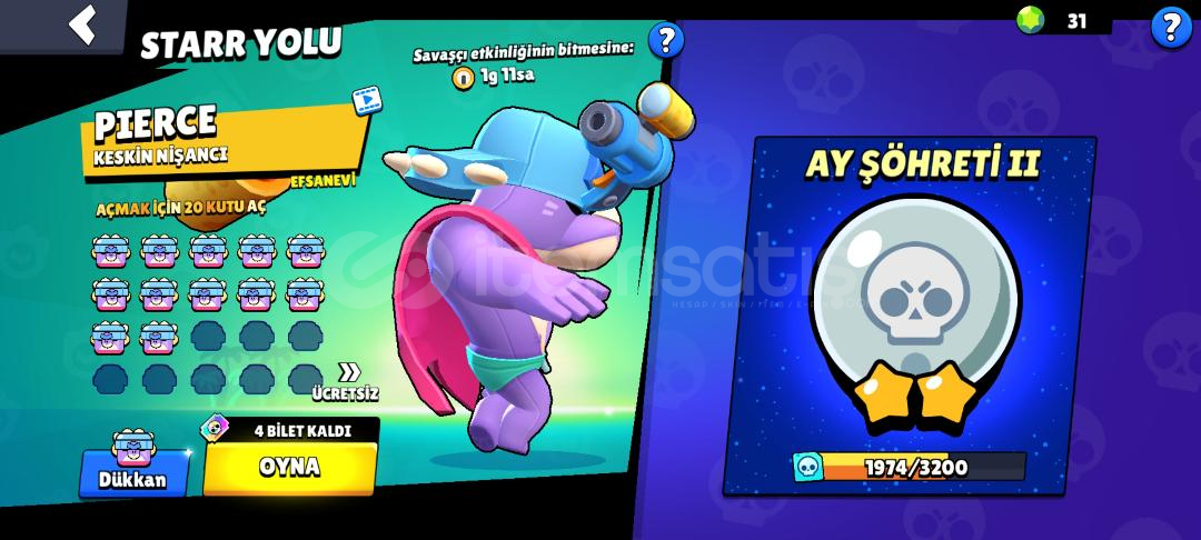 Hesabın karakterlerinin hepsi açıktır 46 bin kupa 9 Efsanevi 8 gizemli 86 destansı 73 süper ender 85 ender kostüm bulunmakta. hesabın 1000 level üstü karakter sayısı 14 tür. şöhret iki ve 4 tane brawl pass açılmıştır. hesaba 6500 tl yatırılmıştır hesabı alacak kişiye şimdiden hayırlı olsun ciddi alıcılar ile isterse iletişime ge&...