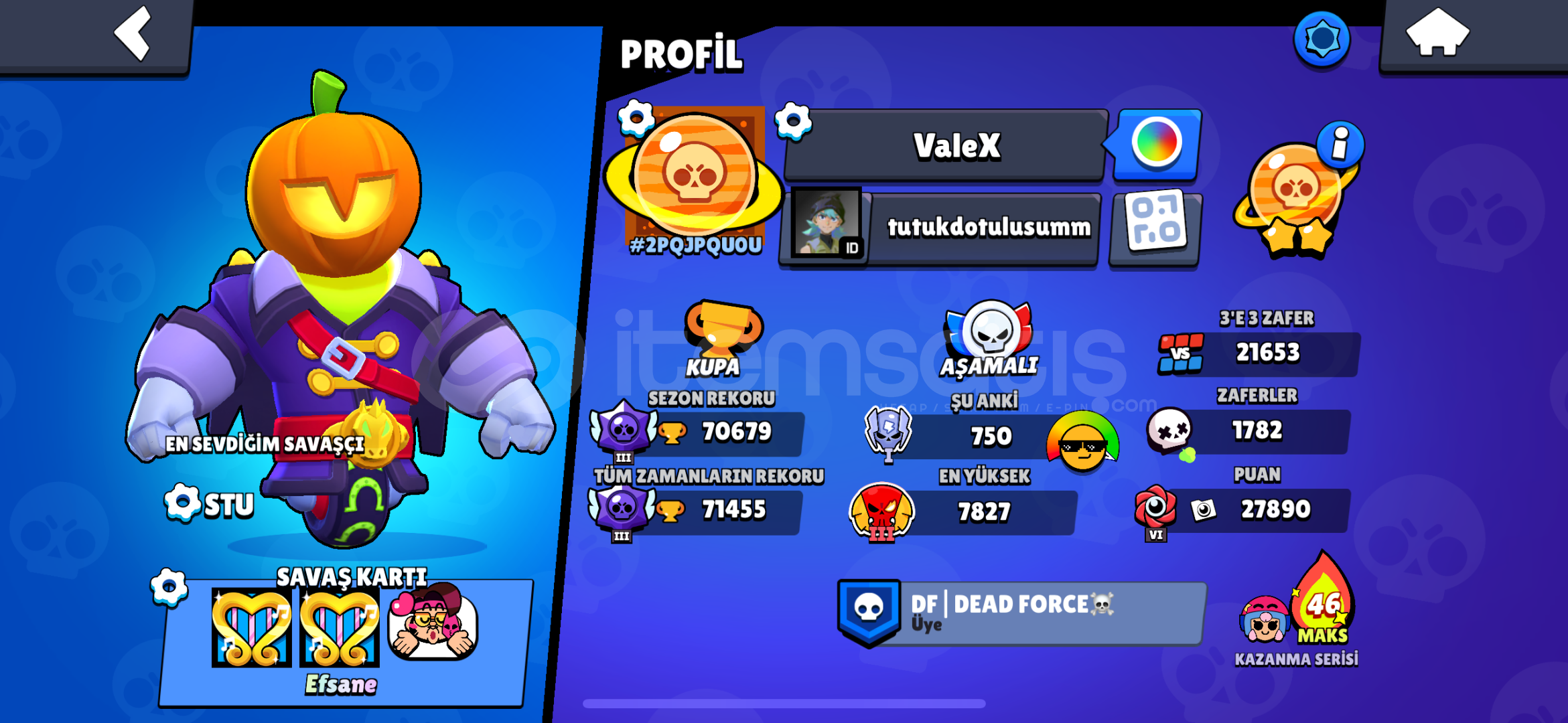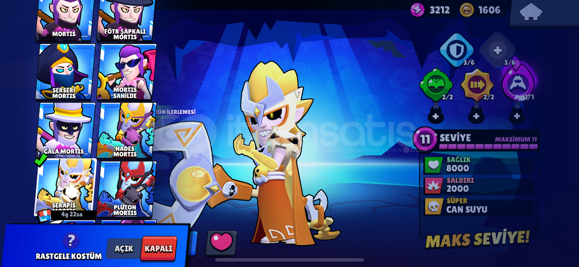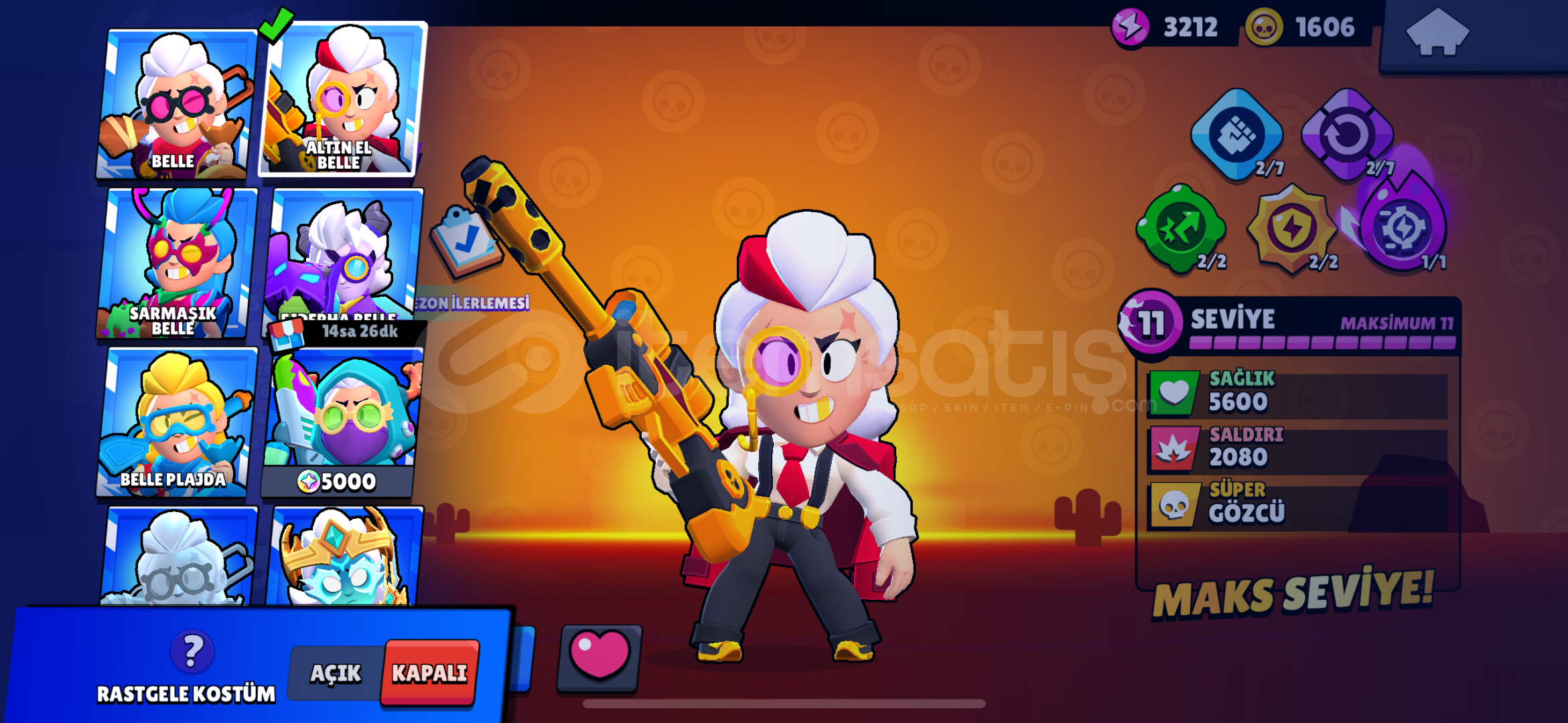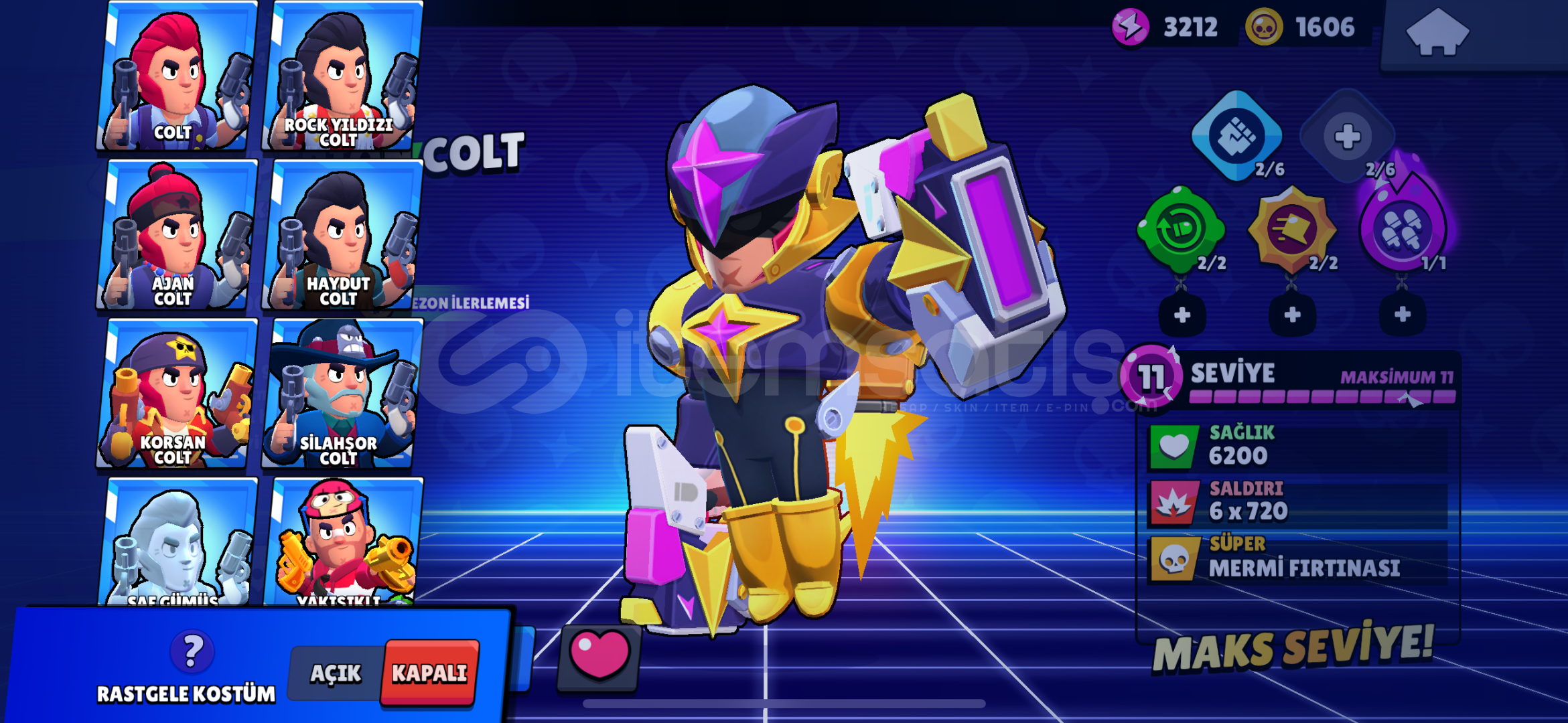 Hesap Özellikleri:🏆 70.000+ kupa (70.5K – 71K bandı)✅ Tüm brawler’lar açık🔥 Power 11 ağırlıklı hesap⚡ Birçok brawler’da Hypercharge aktif🎟️ Çok sayıda eski Brawl PassBibi, Mortis, Crow, Belle, Piper vb.⭐ Pro Pass Colt mevcut👕 Genel olarak çok zengin skin koleksiyonu🧠 Uzun süre emek verilmiş, koleksiyon değeri olan hesapEk Bilg...