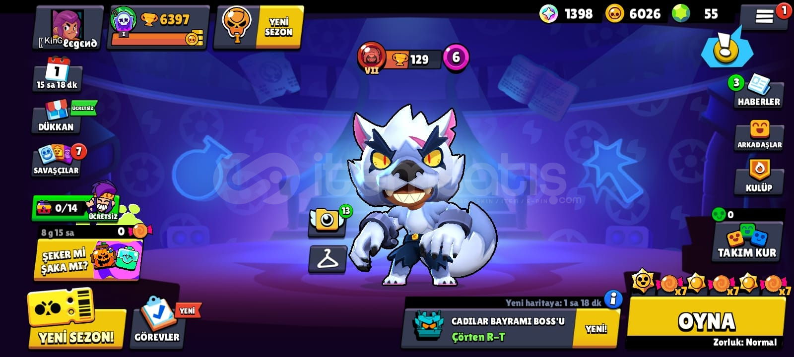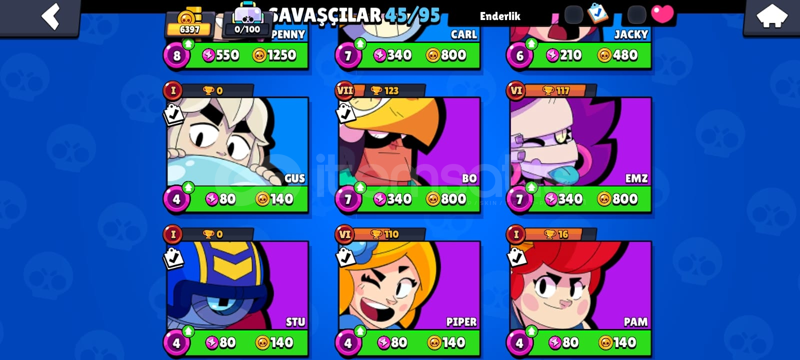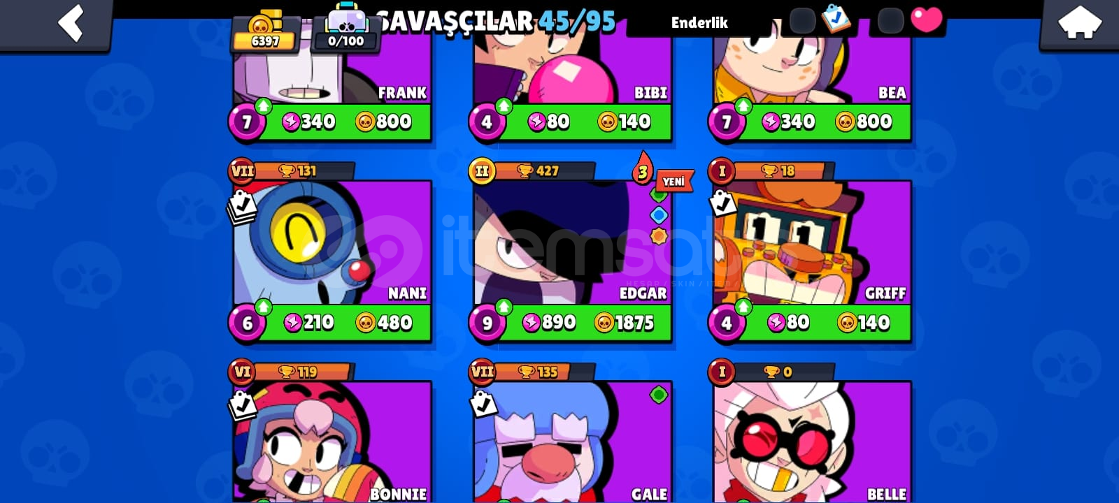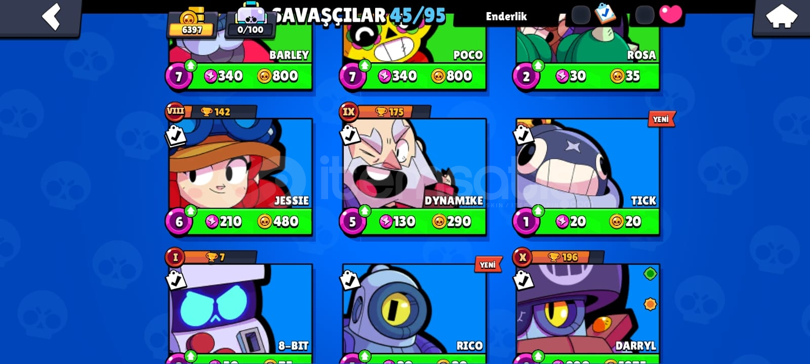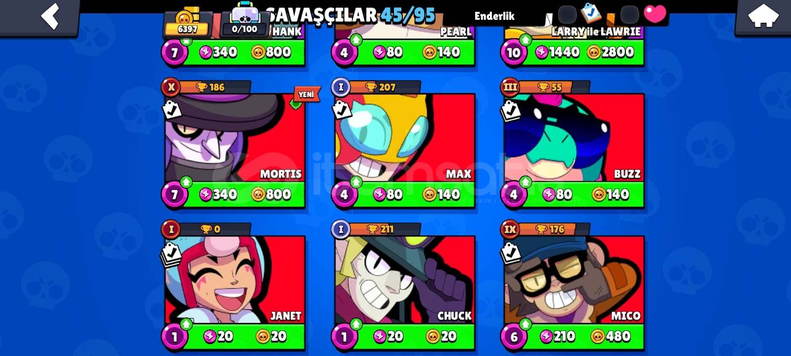 Kupa 6397Mücevher 1398, Altın 6026, Elmas 55İsim değiştirmek ücretsiz45 KarakterliEnder Kostümler 21Süper Ender Kostümler 16Destansı Kostümler 3Gizemli Kostümler 2Efsanevi Kostümler 2GMAİL DEGİSEN