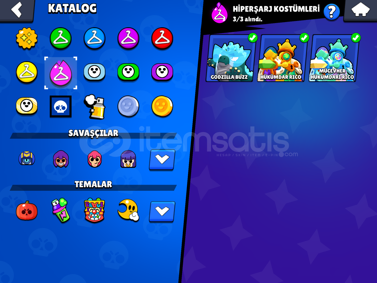 hesabın içinde Skinler 20 destansı 3 efsanevi 3 hiper vardır aşağıda net skin bilgi vardır