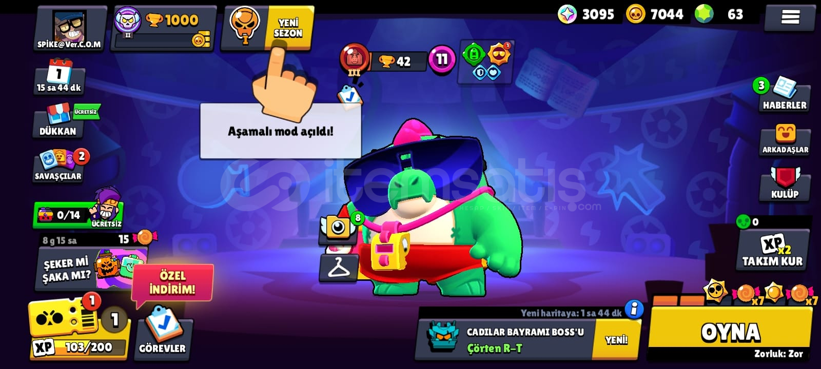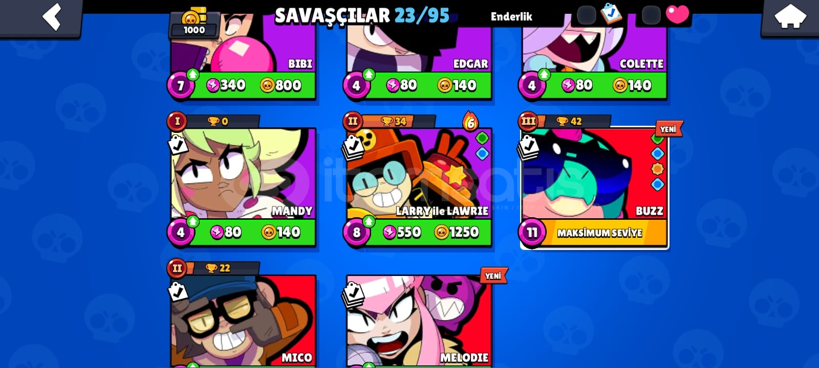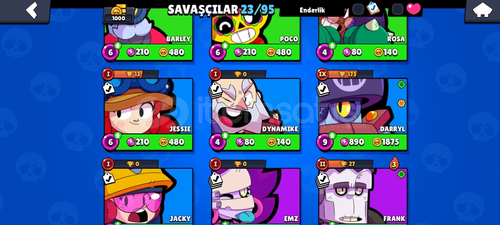 Brawl Stars Hesap-23 Savaşçı vardır.-3095 Mücevher, 7044 Altın, 63 elmas var.-1000 kupalı-Ender Kostümler 8-Süper Ender Kostümler 6-Destansı Kostümler 1Gmail değişen