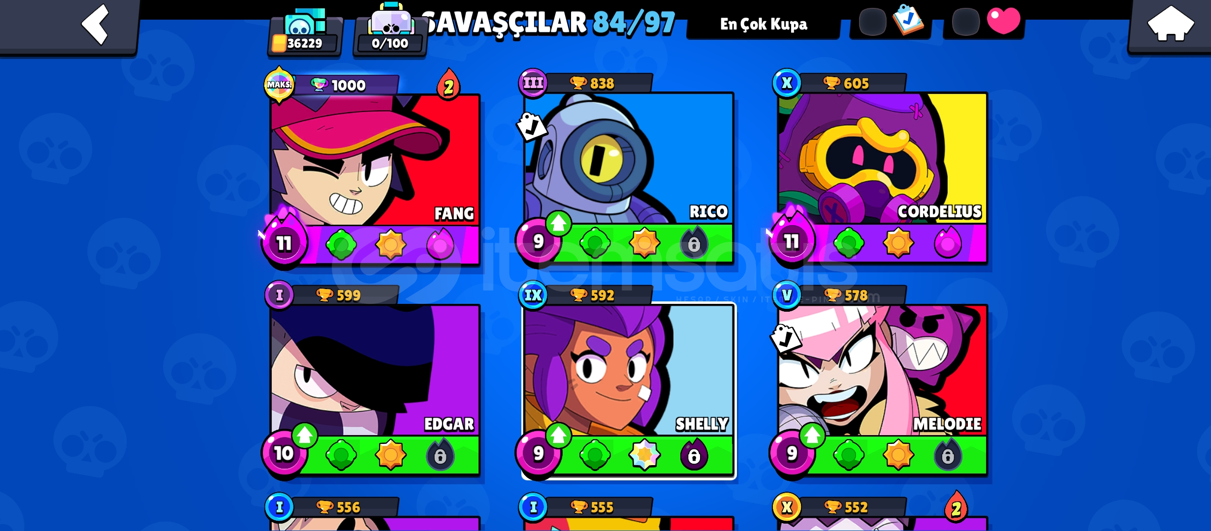 Brawl stars hesap hesapda 84 karakter büssürü deherli kostum 36k kupali hesap