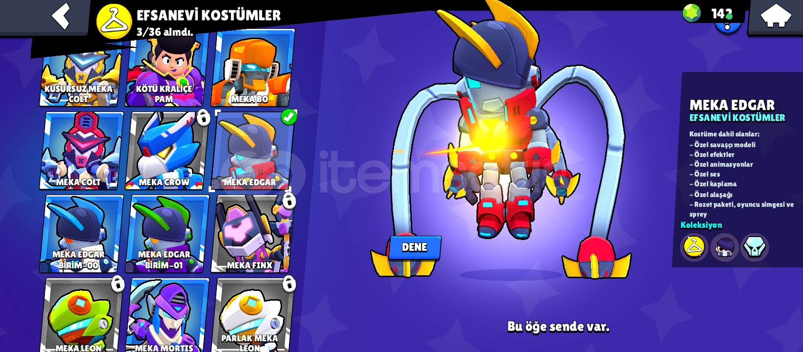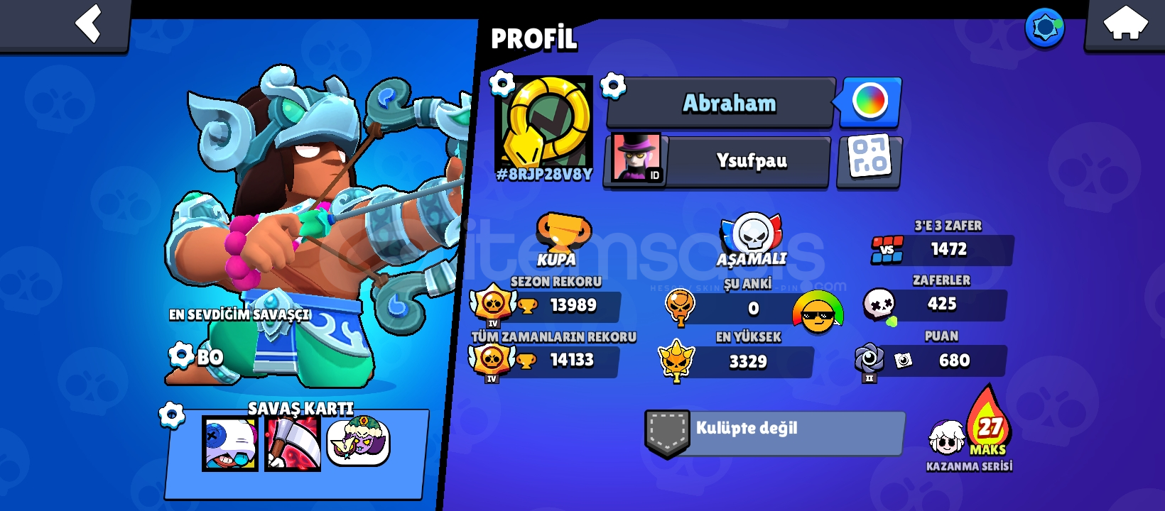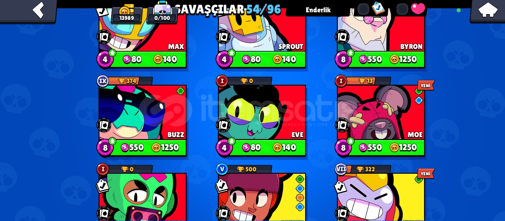 Hızlı teslimat ✅E posta değişimi ✅Fiyatta pazarlık payı yoktur ⛔14 bin kupa 🏆54 Karakter1 Hiperşarj Kostüm3 Efsanevi Kostüm2 Gizemli Kostüm9 Destansı Kostüm24 Süper Ender Kostüm27 Ender Kostüm100den Fazla Emoji100den Fazla Oyuncu SimgesiMevcuttur.