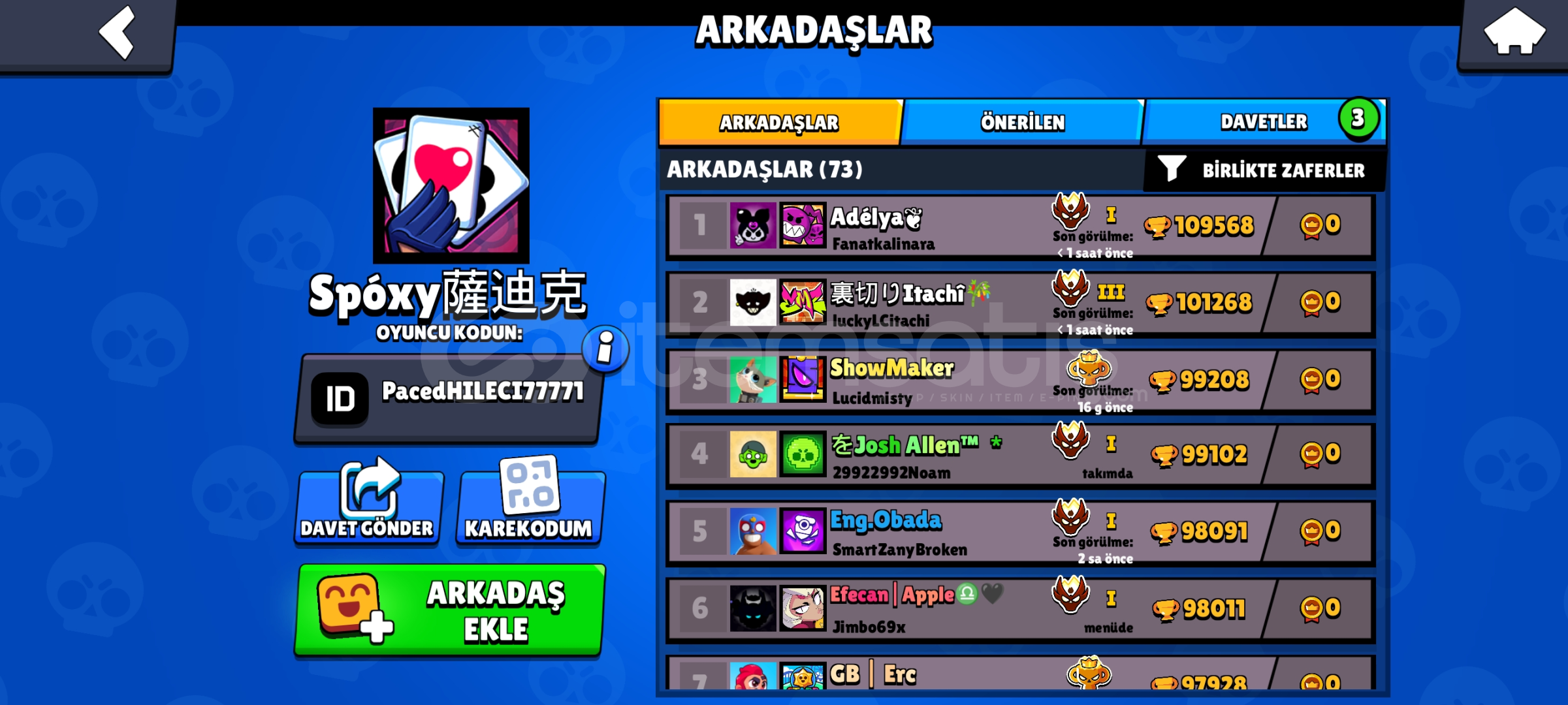 Hesap 2021 Yılından beri aktif bir şekilde oynanan bir hesaptır. Hesapta 75 tane 11 level eşyaları mevcut 61 tanede hiperşarjlı olmak üzere Max karakterler vardır. 13 evsanevi, 15 gizemli, 136 destansı, 109 Süper Ender, 91 tane Ender, 7 Hipeşarjlı kostüm olmak üzere toplam 371 kostüm mevcuttur. Toplam 5 kez yeni, 2 kez eski master, 7 tane master olan pro hesap, 112 Bin kupa Türkiye sıralaması elin...