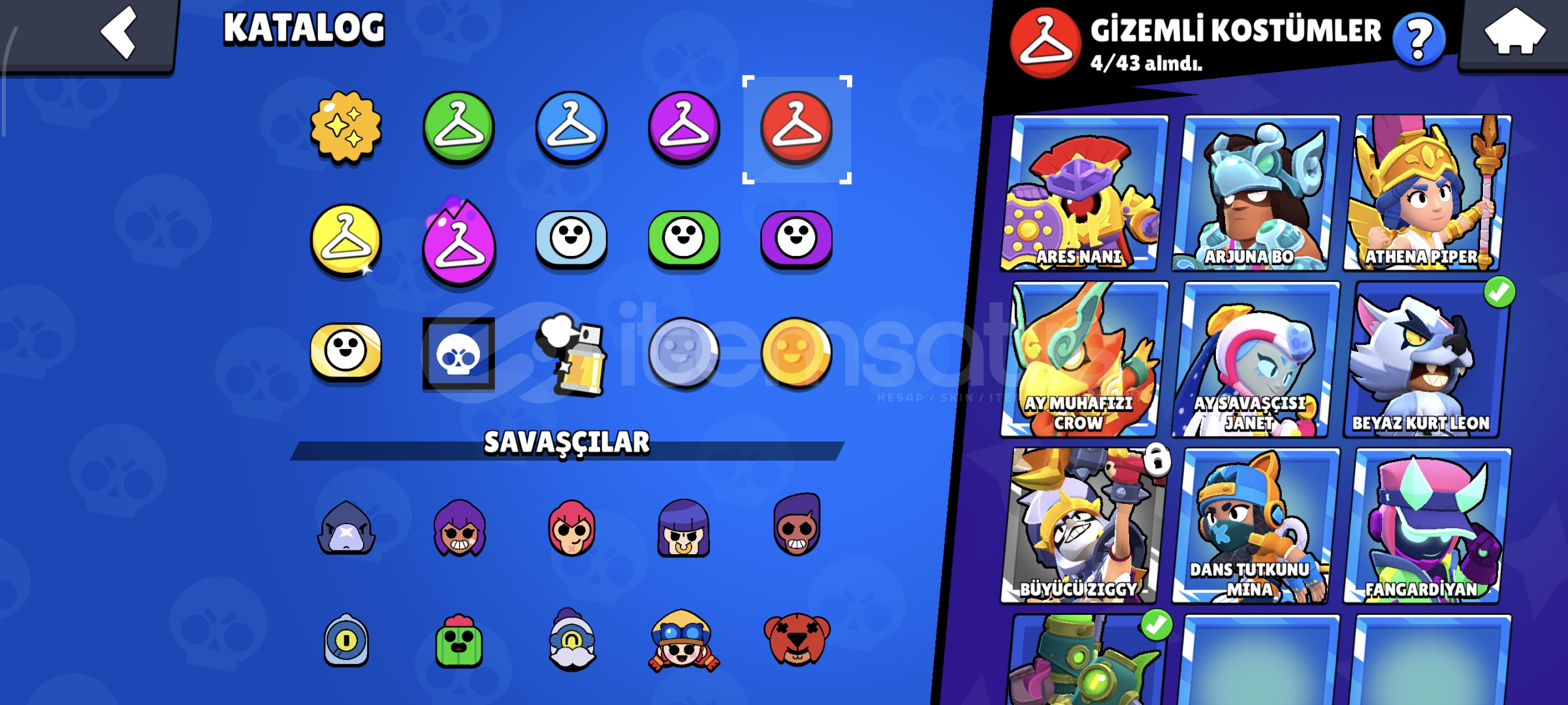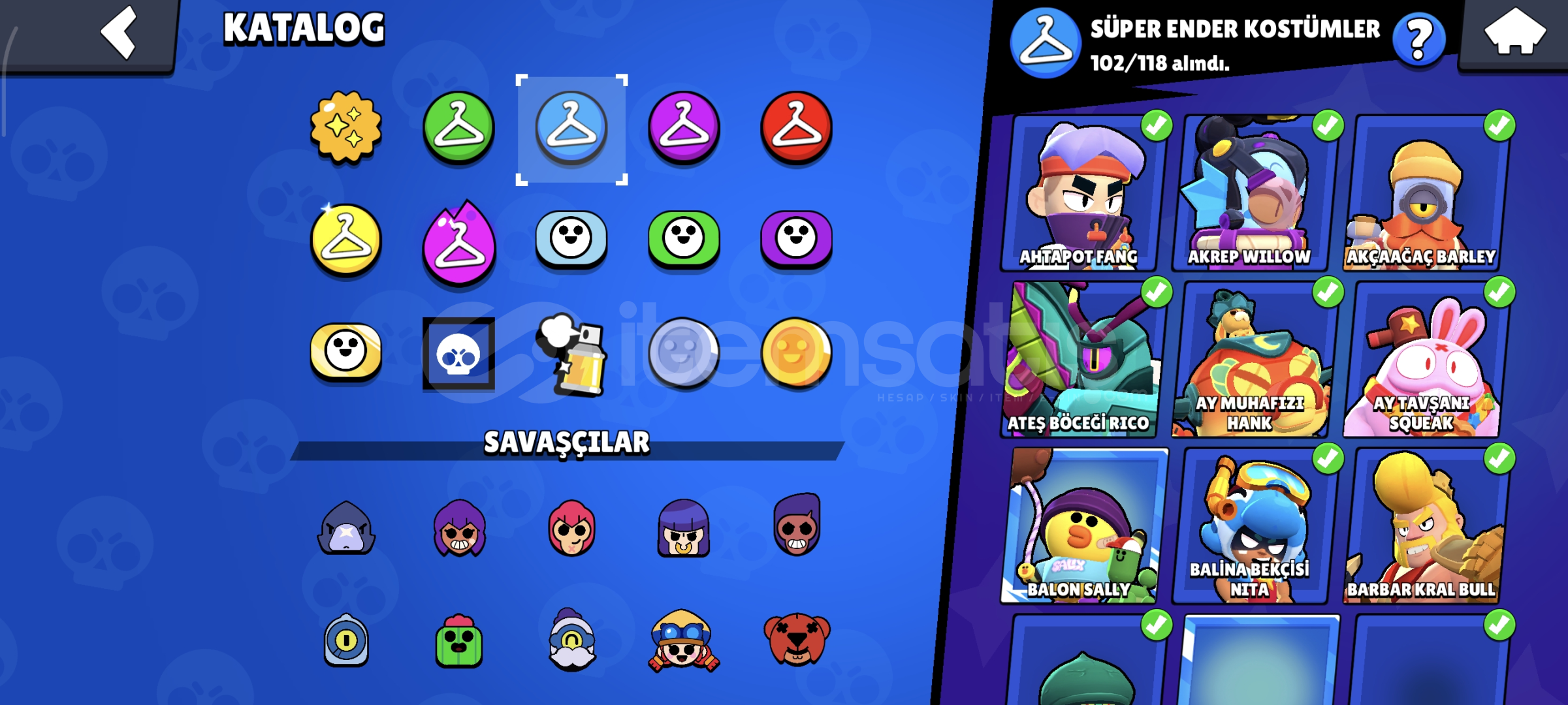 79 Ender Kostüm102 Süper Ender Kostüm103 Destansı Kostüm4 Gizemli Kostüm11 Efsanevi Kostüm2 Hiperşarj Kostümü44 Adet HiperşarjOyundan Kaldırılan Çoğu Kostüm vardır Kahraman Bibi gibi ve çok fazlası