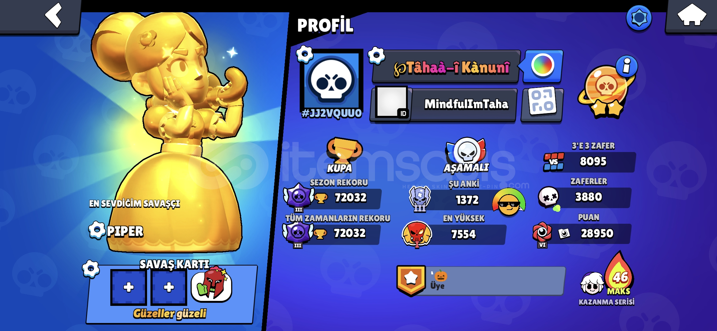 55 adet 11 seviye karakter46 adet 1000 kupa yapılmış karakter• Toplam hesap kuruluş yılı: 2020201 adet sprey373 adet profil simgesi609 adet koleksiyon rozeti29 adet destansı rozet57 adet ender rozet170 adet sıradan rozetToplam 7 adet sezon açılmıştırHesap şu an -5000 elmas ekside olduğu için fiyat → 4000 TL aşağı çekilmiştir.Güvenli teslimat yapılırHesap tamamen...