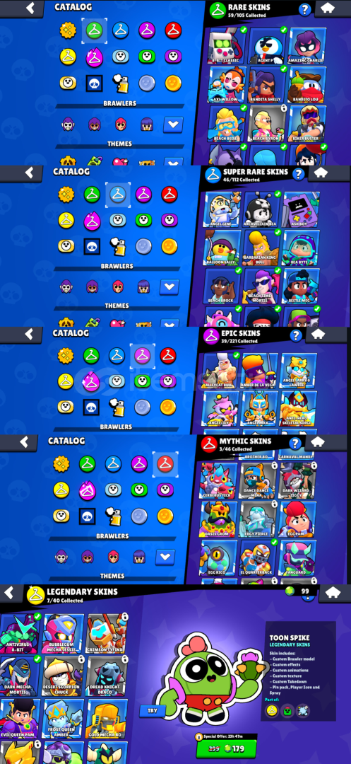 Hesap eski hesaptır İlk sezon brawl pass tüccar gale mevcuttur stunun dönem skinleri mevcuttur hesaptaki çoğu şey fotoğraflarda mevcuttur toplam 13.248 taşlık kostüm mevcuttur